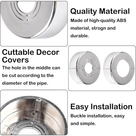 Caractéristiques : Couleur : blanc. Avantage unique : lorsque le tuyau passe à travers le mur, il laisse une surface disgracieuse. Diamètre du trou : 17 mm. FUX 6 Pcs. Rosace radiateur, 12mm-35mm, Blanc Gris Marron Noir, rosace pour tuyaux de chauffage, cache tuyau plomberie, coffrage cache tuyau, cache trou (18mm, Blanc 9016) Faits saillants principaux MADE IN GERMANY - PRODUIT DE MARQUE DE FUX fabriqué en Allemagne - garantie de satisfaction: si vous n'êtes pas satisfait, nous vous remboursons Le lot de 6 pièces en plastique blanc élastique s'adapte aux diamètres de 15 à 18 mm. Chaque cache mesure 20 cm de long, mais vous pouvez facilement les couper... Isolant Tuyau Plomberie Lot De 10 Cache-tuyaux De Radiateur Dorés, En Plastique, 15 Cache Tuyau Radiateur électrique Matériau : plastique durable. Cache Tuyau Plomberie Rosaces De Radiateur En Plastique,Tianher 30 Pièces Rosace Radiateur Cache Tuyau Couvercle De Tuyau Chauffage En Plastique Pour Tuyaux Gaz D'eau Chaude Et Froide Plomberie De Trou Mural Sol Peut être masqué avec un collier de tuyau, rend le mur et l'environnement beaux. Diamètre extérieur : 47 mm., Quantité : lot de 6., Contenu : 6 colliers de tuyau Design pratique : la bande convexe intérieure peut entourer étroitement et s'adapter à différents types de tuyaux, traitement de surface mat, simple et beau, pour vous fournir un meilleur effet décoratif.