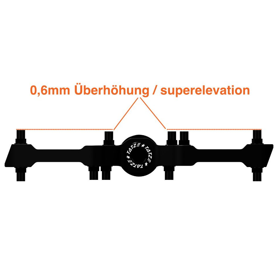 La pédale gauche est une pédale plate extrêmement fine. La pédale LINK est une pédale plate extrêmement fine. La grande plateforme de 112 cm2 (113 x 99 mm/Lxl) et les 40 TATZE PINs avec une surélévation ciblée... Pour augmenter encore l'adhérence ou maximiser la surface de contact, 4 broches par côté peuvent être vissées. Accessoire Velo Tatze Pédales VTT SPD Mc-Fly Titanium Q-Factor 55mm Noires Pédale Vtt En outre, les roulements et les joints peuvent être renouvelés en 5 minutes avec le kit de rafraîchissement disponible en option, pour remettre la montre à 0. Avec ses longues broches mordantes et sa forme plate, le LINK offre des performances maximales. Idéal pour les vététistes Enduro, All-Mountain et Trail exigeants Tatze Pedales de Plataforma - CONTACT CNC Large - negro 2 joints d'étanchéité à double lèvre sont intégrés pour l'étanchéité, qui protègent les roulements de la saleté et de l'humidité. La grande plate-forme avec 112 cm² (113 x 99 mm/LxB) et 40 broches TATZE avec surélévation ciblée assurent une excellente adhérence et une bonne connexion entre la pédale et la chaussure.