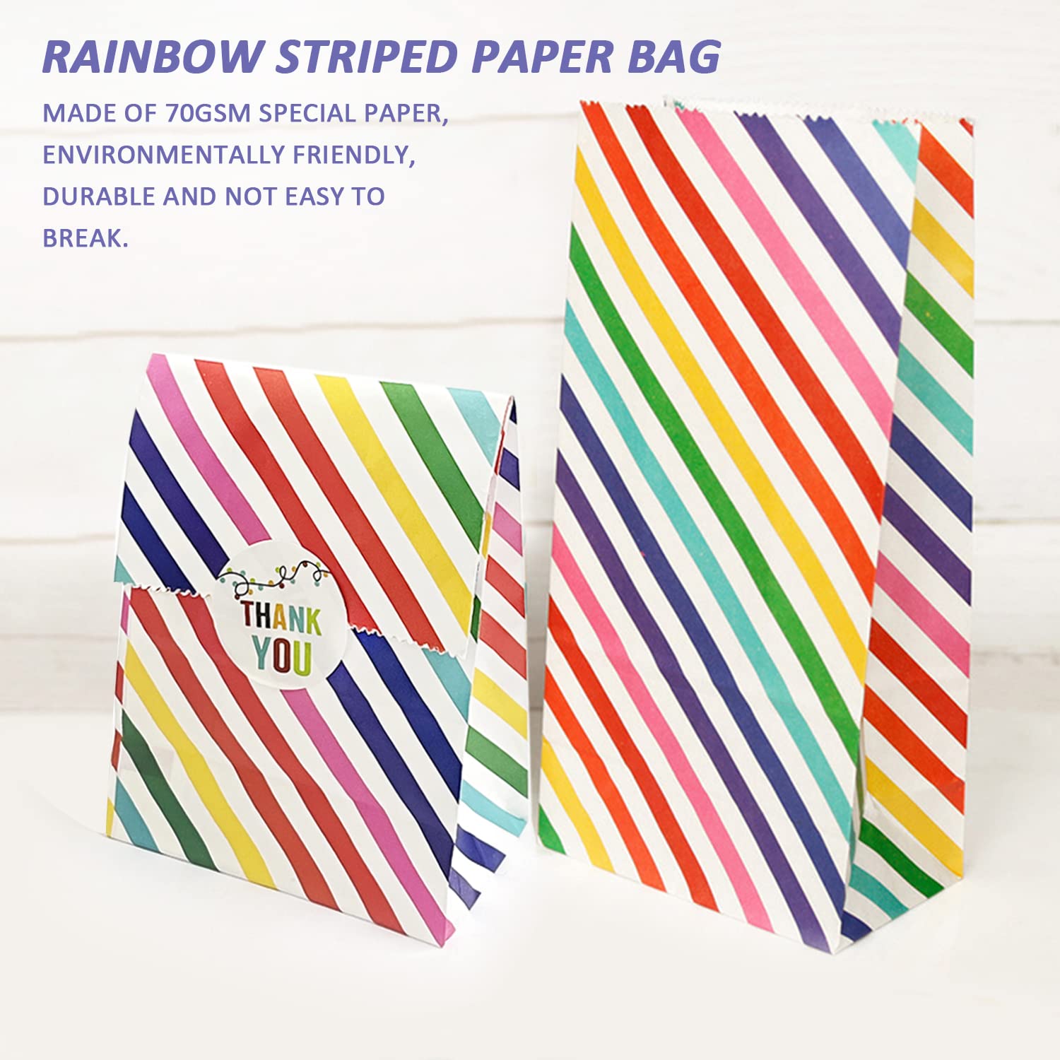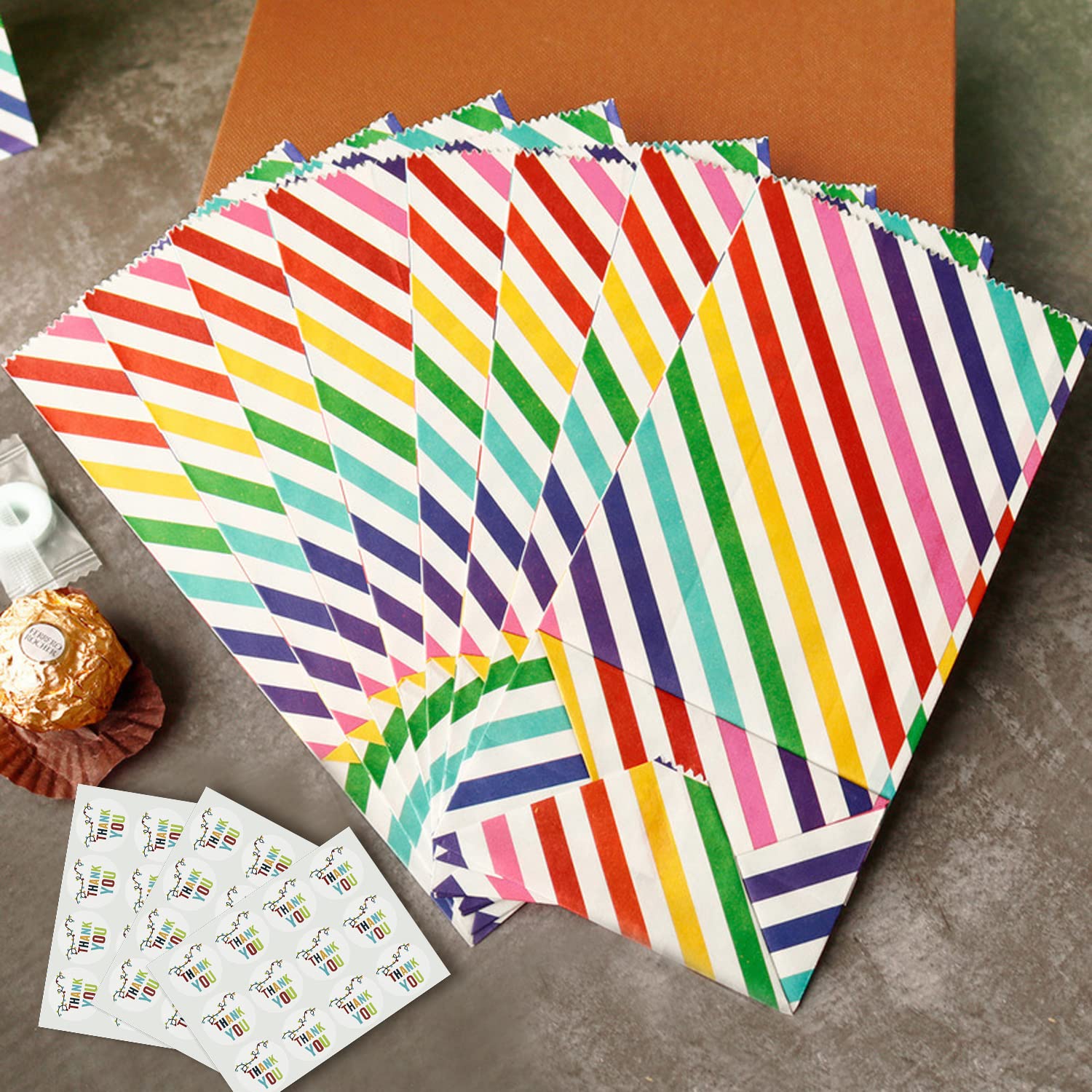 Nom du produit : sac en papier rayé arc-en-ciel. 【Matériau de haute qualité】 Le sac en papier est composé de papier spécial de 70 g/m², imprimé UV, durable et difficile à casser. adapté pour les fêtes, festivals, anniversaires et autres occasions, matériaux de haute qualité, pas facile à casser. Occasion : Aïd, mariage et fiançailles, baptême et baptême, Saint-Patrick, grand événement, retraite, révélation du sexe, fête d'anniversaire, déménagement, fête des enfants, fête des enfants, rentrée scolaire, Nouvel An chinois, jour de la terre, fête des pères, remerciements, fête, Noël, Saint-Valentin, mariage, Halloween... Achetez Cartons en papier pour fête, 36 pièces, boîte à pop-corn, fournitures de fête, boîtes à pop-corn pures, collations, baignoire alimentaire... Pochette Cadeau 30Pièces Sacs En Papier À Rayures Arc-En-Ciel Pour Bonbons,Sacs Cadeaux Sac Cadeau Caractéristiques : large gamme d'utilisations, peut être utilisé comme sac d'emballage en papier, sac cadeau, etc. Sacs en papier avec autocollants arc-en-ciel pour 【Apparence mignonne et belle】 L'aspect lumineux attire l'œil, mignonne et à la mode, les enfants et les adultes l'aimeront. 【Contenu du produit】 30pièces sacs en papier à rayures arc-en-ciel de 18 x 9 x 5,5 cm, 36pièces autocollants ronds en rotin fleuri de 3,5 cm. 【DIY】Vous pouvez utiliser votre créativité et votre imagination sur les sacs en papier, ou créer le style que vous voulez avec votre famille et vos amis, vous pouvez utiliser des autocollants pour créer votre propre sac en papier spécial.