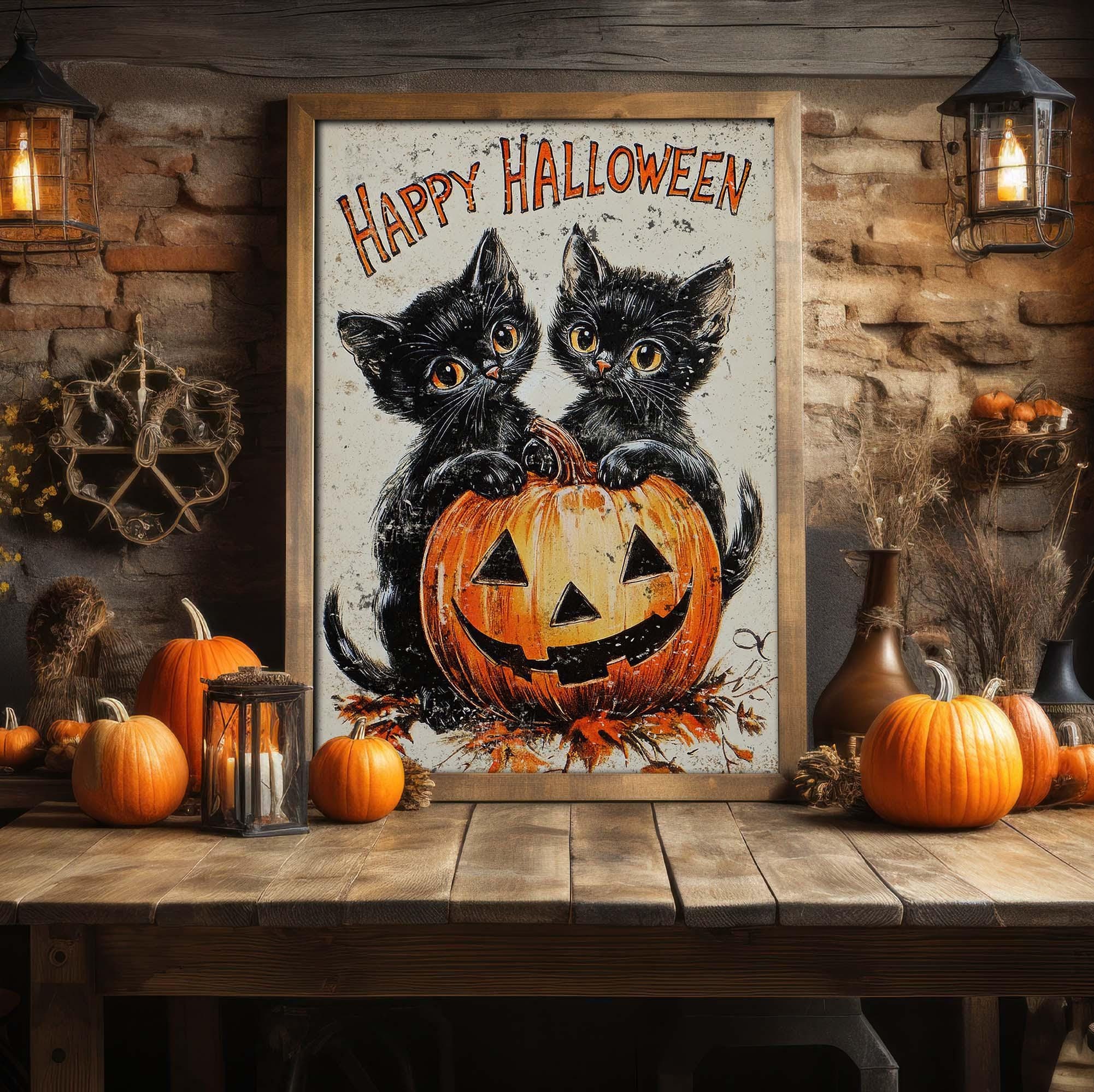 Parfaits pour personnaliser les couverts et faciliter le nettoyage, ces sets de table en papier présentent un sentiment « Happy Halloween » avec un design d'Halloween de style rétro avec une lanterne centrale Jack-'O-Lantern entourée de chats noirs et de chauves-souris., Set de table avec, Dimensions : 44 x 30 cm , Matériaux : papier , Artiste : Annie Schickel Set Pour Halloween Dans Le Style Pixel Art Une Citrouille Une Chauve-souris Et Une Inscription Primitives By Kathy Lot De 24 Sets De Table En Papier – Style Set Pour Halloween Dans Le Style Pixel Art Une Citrouille Une Chauve-souris Et Une Inscription... Téléchargez ce vecteur Premium sur Modèle d'étiquette de cadre d'Halloween de style vintage Dessiné à la main Chauve-souris vampire Scull Citrouilles maléfiques Chapeau de sorcière et Illustrations de croquis de chaudron avec typographie rétro et bordures isolées et explorez des millions de vecteurs professionnels sur Freepik.