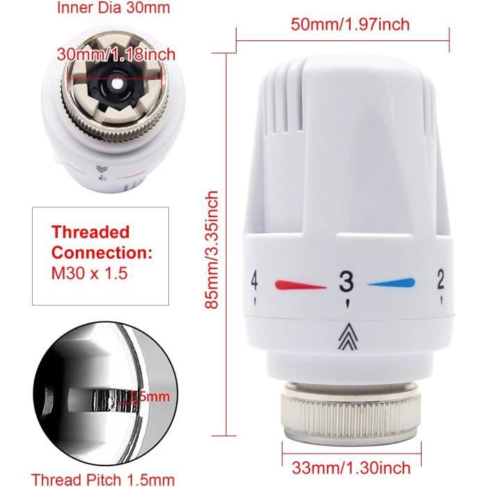Marque. ZiYuya ; Dimensions de l'article L x l x H · 8 x 6 x 1 centimètres ; Finition extérieure. Plastique ; Type de connexion d'entrée. Fileté ; Nombre de ports. 8 Caractéristiques : Pression : basse pression. Standard ou non standard : standard., Style : DN15B., Couleur : blanc argenté., Matériau : cuivre. Vanne de radiateur thermostatique système de chauf... – Grandado Tete Thermostatique Schneider CCTFR6100 – Tête De Vanne Thermostatique Connectée Pour Système Wiser Robinet Thermostatique Radiateur Conception compacte : La conception compacte de la vanne lui permet d'être largement utilisée pour l'eau, les liquides non corrosifs et les gaz ininflammables, ce qui la rend polyvalente dans son application. (Connexion filetée : M30*1., 5) Remarque: Avant d'acheter, veuillez confirmer si cette tête thermostatique homogène convient à votre vanne et seule la tête sera fournie. Il offre une commodité lors de l'utilisation. Matériau de haute qualité : la tête thermostatique est fabriquée en laiton, acier et plastique, ce qui la rend durable, résistante à la déformation et a une longue durée de vie. Thermostat Radiateur Connecté - Tête Thermostatique Connectée... Source d'alimentation : CC.
