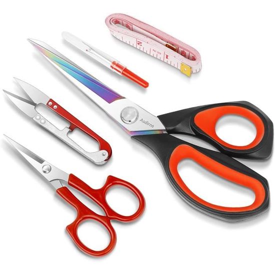 Polyvalent : parfait pour le bureau, la maison, la cuisine, la couture, la découpe de papier, l'art fait main et plus ! Ensemble de 2 : vous en aurez une de rechange lorsque vous en aurez besoin. Lames tranchantes : coupez le papier, le tissu, le carton et plus facilement Fabriquées à partir de matériaux de qualité supérieure, ces ciseaux professionnels pour tailleur sont des outils efficaces, durables et confortables pour diverses applications domestiques et créatives. Le design ergonomique et antidérapant de la poignée offre un contrôle précis et un confort exceptionnel, réduisant efficacement la fatigue des mains lors d'une utilisation prolongée. Ciseaux en Acier Inoxydable Polyvalents 2 Pièces - Lames Ciseau Couture Gaucher Ciseaux Guidage Laser, Ciseaux De Couture Polyvalents En Acier Inoxydable Ciseaux De Couture Ciseaux A Bout Rond Ultra-tranchants et polyvalents : ces ciseaux sont idéaux pour couper plus de 16 couches de tissu, comme le coton, le denim, le cuir et la toile de jute. Particulièrement adapté aux personnes souffrant d'arthrite ou d'autres troubles de la main Parfaits pour les travaux de coupe dans l'atelier de couture, pour la couture, le quilting, les projets de bricolage Pour garder vos ciseaux affûtés et en bon état, les lames sont enduites d'un lubrifiant protecteur. Dotés de lames en acier inoxydable de haute qualité et ultra-tranchantes, ces ciseaux coupent proprement plusieurs couches de tissu. Ciseaux à Tissu Couture Polyvalents en Titane 3 Paires de Tailleur... Les lames sont recouvertes d'un revêtement en titane multicolore pour un aspect brillant et attrayant, ainsi qu'une excellente résistance à la corrosion, empêchant les adhésifs comme la colle et le ruban de coller, ce qui les rend adaptées à la découpe d'une large gamme de matériaux.