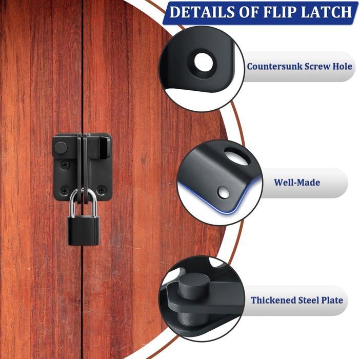Caractéristiques: 1., Le loquet est en acier inoxydable. Cette serrure s'ouvre et se ferme par glissement et assure la sécurité des portes et fenêtres de petite et moyenne taille. Si vous avez des questions, veuillez nous en faire part immédiatement et nous nous en occuperons dès que nous les recevrons. Verrou porte coulissante | Leroy Merlin Surface impressionnante : la surface noire mate vous offrira un toucher confortable.Construction robuste : la construction en acier inoxydable de haute qualité garantit résistance et durabilité par temps humide.Utilisations multiples : Convient pour la sécurité des portes, des portes pour animaux, des fenêtres, des placards, des couvertures et des jardins, etc.Taille du produit : 49 mm x... Verrou Porte Coulissante Avec Clé Serrure De Porte Coulissante D'angle, Verrou De Porte Coulissante, Verrou De Volet, Loquet De Porte Pour Jardin Salle De Bain Garage Noir 97564207 Securité Porte Entree Spécifications: Nom du produit: Loquet de Porte en Acier Inoxydable Taille de l'emballage: 150 x 75 x 12 mm/5., 91 x 2., 95 x 0., 47 pouces Taille du loquet: 70 x 50 mm/2., 76 x 1., 97 pouces Le paquet comprend: 4 Jeu x Loquet Coulissant (avec 16 vis) Remarque: - Nous attachons une grande importance à la qualité de nos produits, et nous attachons également une grande importance à l'expérience de nos clients. 🔒【Large application】Le Loquet de Porte en Acier Inoxydable Convient à la plupart des serrures de porte, peut être installé dans la chambre à coucher, la remise, la fenêtre, la porte coulissante, la chambre à coucher, le sous-sol, le bureau, le placard, la cour, le chenil pour chiens, la clôture et ainsi de suite. Le nombre de sets est suffisant pour vous. 🔒【Sécurité et intimité】 Une fois la serrure de porte fermée, elle peut être glissée au centre de deux plaques de guidage concaves pour empêcher le vol et l'ouverture depuis l'extérieur. 🔒【Facile à installer】Centred cylinder head screw for installation on both sides.