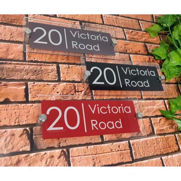 Ajoutez un look moderne et contemporain à votre intérieur avec un choix de couleurs. N'oubliez pas d'ajouter un message au vendeur lors de la commande avec votre numéro de maison/nom et nom de rue. N'oubliez pas d'ajouter un message au vendeur lors de la commande avec votre numéro de maison/nom et nom de rue , Hauteur : 12,5 cm , Largeur : 19 cm , Profondeur : 3,5 cm La Moderne est notre unique collection venant sur une plaque. Les chiffres finis aluminium brossé offrent le constraste parfait avec le fond noir assurant leur visibilité! C'est la plus facile et rapide de nos modèles à installer ! La plaque d’adresse Moderne trouvera tout aussi bien sa place sur une maison neuve ou un édifice en rénovation! Elle modernise facilement une résidence... PLAQUE DE PORTE - LETTRE DECORATIVE ,black door number-100x140mm--Plaques de numéro de porte de... Plaque Rose Cottage Ou Numéro De Maison : Personnalisée - France Plaque à accrocher message bleu et doré Atelier jasmin - Le petit Souk