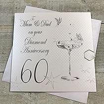 Intérieur vierge pour écrire votre message personnel. Conditions d'achat en gros flexibles avec Ankorstore Achat Carte de mariage en diamant - Happy Diamond Wedding Anniversary, 60 ans de mariage, 60e anniversaire de mariage, parents, grands-parents, typographie en gros Finition à la main avec paillettes étincelantes., Enveloppe incluse., 16 x 16 cm. LOVE desgn typographe carte de Sant-Valentn annversare de marage... WHITE COTTON CARDS "to Mum And Dad On Your Diamond Anniversary Faite à La Main 60 Ans Carte D'anniversaire White Cotton Cards est une société de cartes et de cadeaux primée. Nous répondons à toutes les occasions et concevons constamment de nouvelles gammes pour vous aider à revenir., Enveloppe incluse., Dimensions : 16 x 16 cm.