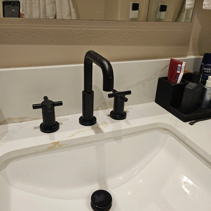 Installation facile : sans clé, le tuyau à connexion rapide clique audiblement lorsque les conduites d'eau sont connectées correctement, assurant une installation de qualité pour aider à prévenir les fuites. Les lignes lisses et la forme élégante de la collection Delta® Nicoli™ pour le bain ajoutent une touche moderne à votre bain. Vous pouvez l'installer en toute confiance en sachant que les robinets Delta sont couverts par notre garantie limitée à vie Valve fiable : la cartouche de valve est testée pour durer au moins 500 000 utilisations pour garantir une haute performance avec moins de gouttes et un fonctionnement fluide de la poignée du robinet de salle de bain. Delta Robinet Pour Salle De Bain à 3 Trous Et 2 Poignées Avec Ensemble De Drain Dryden Cbkb2196 Garantie limitée à vie : vous pouvez l'installer en toute confiance, sachant que les robinets de salle de bain Delta sont couverts par la garantie limitée à vie Delta Faucet Delta Robinet de salle de bain Nicoli à 3 trous, robinet de salle de bain noir/doré, robinet de salle de bain à 2 poignées, robinet d'évier de salle de bain... Delta Robinet de salle de bain Centerset (4 po) à 2 poignées et arc Finition résistante à la corrosion : nos finitions de robinet de salle de bain en bronze champagne doré brillant sont intentionnellement conçues pour durer et testées pour résister à la corrosion selon au moins 2 fois les normes de l'industrie Le robinet de salle de bain largement répandu convient aux installations répandues à 3 trous de 15,2 à 40,6 cm