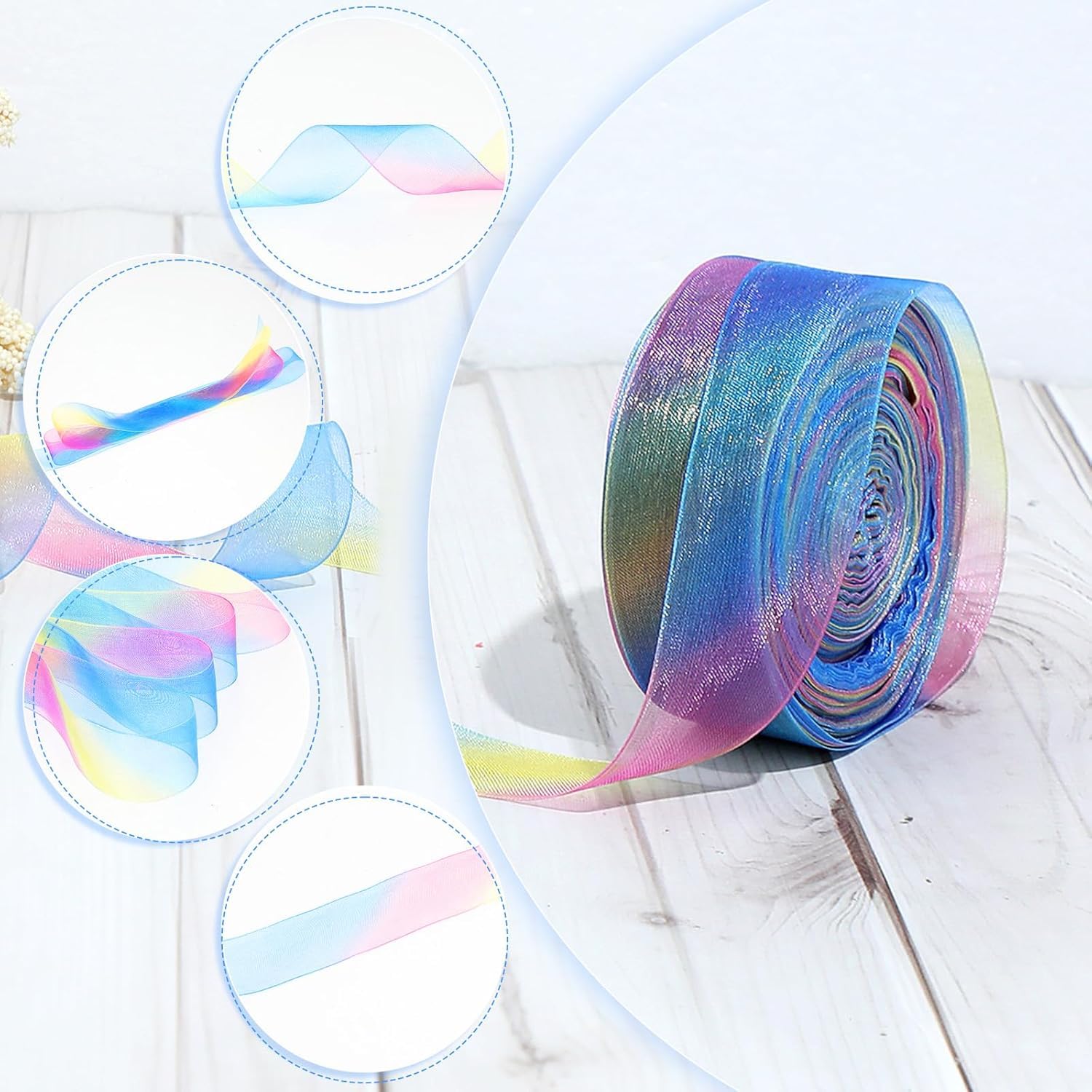 Matériau de haute qualité : fabriqué à partir de tissu en mousseline de soie de qualité supérieure, notre ruban arc-en-ciel offre une touche lisse et élégante avec une finition brillante, parfait pour rehausser n'importe quel cadeau ou décoration Longueur généreuse : chaque rouleau de notre ruban en organza mesure environ 45,2 m de long et 2,5 cm de large, vous permettant de le couper à la longueur souhaitée pour des applications polyvalentes dans vos projets Utilisation polyvalente : notre ruban en mousseline arc-en-ciel est adapté pour la couture, la décoration, la création de nœuds et divers travaux manuels, ce qui en fait un ajout essentiel à vos fournitures d'artisanat. Décoration de ruban 50 mètres de ruban d'emballage de mariage or Love... Largement appliqué: le ruban d'organza coloré convient à l'emballage de cadeau, aux scènes décoratives, à la décoration unique d'arc, au lustre transparent et... PATIKIL Ruban En Organza De 2,5 Cm, 91,4 M De Long Pour Bouquet, Gâteau, Invitations, Cartes, Décoration De Fête, Or Clair (45,7 M, Rouleau EBTOOLS ruban de tulle Ruban décoratif en organza exquis de 40 mm
