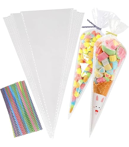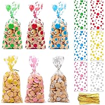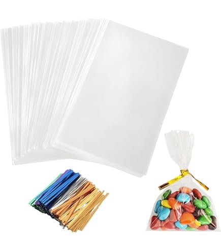 Lot de 100 sacs en cellophane. Description: Nom : sacs en cellophane Quantité : 100 sacs en cellophane ; 120 rubans métalliques. Sachet avec cordon 100 x 120 mm PE 50 microns PAR 1000 Matériau : OPP Couleur : multicolore. OPP de qualité supérieure : ces sacs transparents sont fabriqués en matériau OPP de qualité alimentaire, sans odeur, non toxique et portable. Ce lot de sacs arc-en-ciel en aluminium a plus que suffisant pour un usage quotidien Dimensions : sacs en cellophane : 27 x 12,5 cm ; bandes métalliques : 9 cm. CCYKXA 100 Pièces Sachets Bonbons, 27 x 12,5cm Sachets Contenu de la livraison : chaque lot contient 100 sacs en cellophane en 4 parties de 27 x 12,5 cm. Comprend également 120 cordons torsadés dorés d'une longueur de 9 cm. Sacs transparents pour offrir, échanger et afficher. Celebration Chocolat 100 Pièces Sachet Plastique Transparent, 27 X 12,5cm Bonbon Avec 120 Rubans Métalliques, Arc-en-ciel Pour Chocolat, Friandises, Pain Sachet Transparent Bonbon Lot de Sachets pour Bonbons]Vous recevrez 100 petits sachets pour bonbons de 27 x 12,5 cm et 100 rubans dorés de 8 cm de long; [Matériau de Haute... Lot de 120 bandes métalliques. Stockage des aliments : ces sacs en cellophane conviennent aux enfants pour mettre ou retirer des bonbons avec leurs petites mains, ainsi que des bandes métalliques qui vous aident à mieux conserver les aliments et à empêcher le contenu de tomber sans avoir besoin d'autres outils de fermeture.