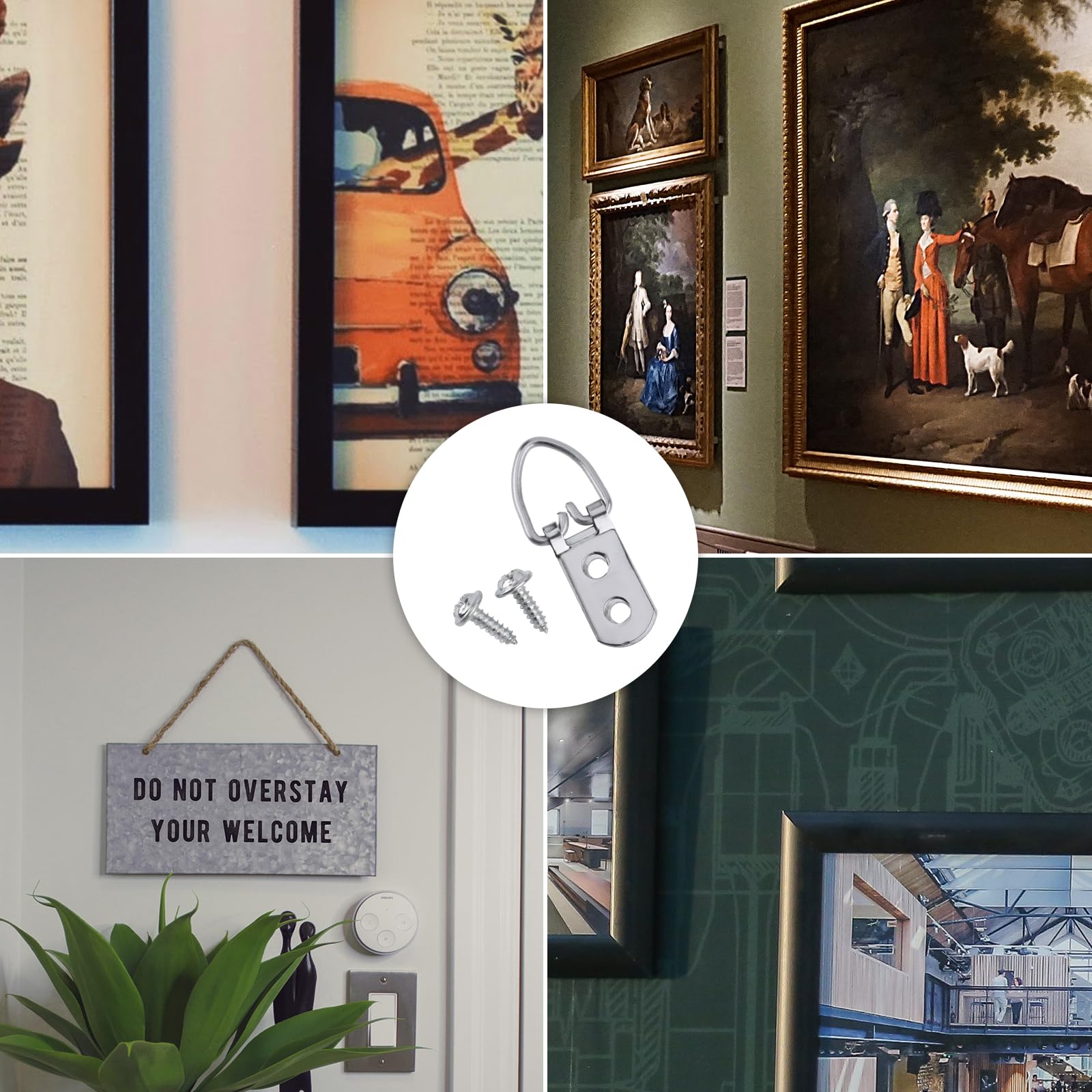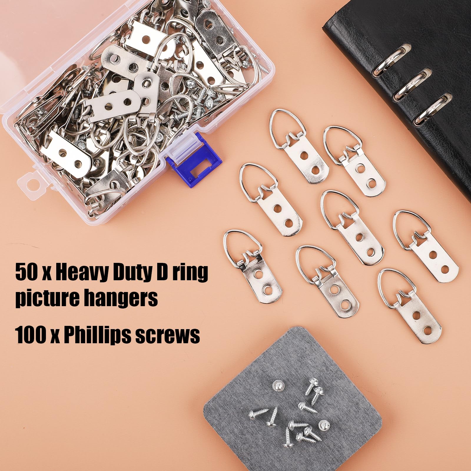 Conception de 2 trous: Notre cintre en D est conçu avec 2 trous pour fournir plus de soutien sans causer trop de dommages au mur. Lot De 100 Petits Crochets Triangulaires En Acier Avec Vis Pour Cadres Photo, Crochets Triangulaires Avec Boîte Transparente, Anneaux De Levage à Trou Unique Pour Suspendre Des Photos D'horloge Matériau produit: Notre gardien D Ring est en acier de qualité, avec une forte capacité de charge et une surface lisse, imperméable et fiable, durable et solide. Cadre Photo Suspendu, Design Élégant en Acier avec Vis Kit d'Assortiment de Suspension 50 Pcs Crochets Muraux pour Accrocher des Peintures. Livraison en 3... 3 Set/100pcs Crochets De Cadre Photo En Fer Cintres Anneau Robustes Ensemble de suspension pour tableau: comprend 50 ensembles de 2 tailles ; 30 ensembles de crochets à pointes de 30 lb et 20 ensembles de crochets à pointes de 50 lb, une quantité suffisante pour répondre à vos différents besoins. Cintres 2 Ensembles Crochet Plafond De Plafond Muraux De Suspension... Application large: le cintre D-Ring est un outil de suspension idéal pour la maison, les expositions d'art, le lieu de travail et le bureau;Parfait pour suspendre les cadres, les peintures, les couronnes, les miroirs et les décorations murales. Lorsque le cadre a été retiré, le trou laissé dans le mur était petit et il était à peine visible.