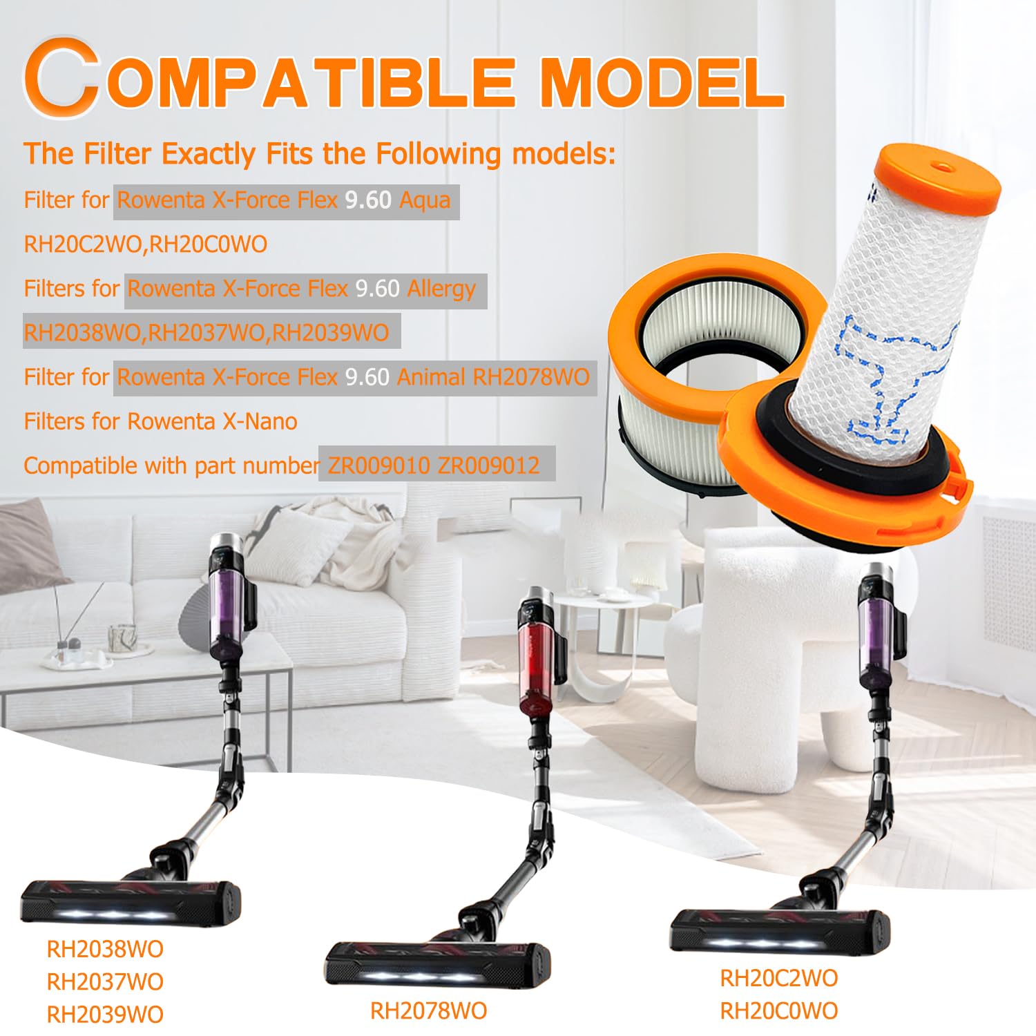 L'aspirateur va retrouver un second souffle Le filtre à haute filtration pour une meilleure capture des allergènes, des poussières et des poils que vos animaux de compagnie peuvent apporter de l'extérieur Le filtre de remplacement améliore la qualité de l'air dans votre maison, assure un meilleur air frais et un cadre de vie plus sain Facile à nettoyer: Vous pouvez brosser le filtre avec la brosse de nettoyage assortie et tapoter pour enlever la poussière accumulée Ou nettoyez le filtre avec de l'eau propre, mais attendez soigneusement que le filtre sèche avant de l'installer sur l'aspirateur Contenu du package 2 Filtres Pré-moteur 2 Filtres Post-moteur 1 brosse de nettoyage 【Bonnes Performances】Le filtre est fait de papier de carte filtre professionnel, de plastique ABS durable et d'un bon anneau de silicone d'étanchéité, solide et durable, peut réduire la fréquence de remplacement de l'élément filtrant Filtre pour RH1127WO RH1128WO RH1129WO RH2037WO RH2038WO RH2039WO RH2078WO RH20C2WO RH20COWO. Contenu de la livraison 2 Pièces de filtres. Filtre de rechange compatible avec les pièces de rechange Rowenta ZR009010. (Veuillez confirmer votre modèle d'aspirateur avant d'acheter) Modèle compatible Filtre cylindrique lavable adapté aux modèles Filtre pour Rowenta X-FORCE FLEX 9.60, Filtres pour Rowenta X-FORCE... Filtre Rowenta Zr009010 Filtre Pour Rowenta X-FORCE FLEX 9.60, Filtres Pour Rowenta X-FORCE Rowenta X Nano 【Parfaitement Compatible】Filtre compatible avec Rowenta X-Force Flex 9., 60 et X-Nano Essential RH20xx. Lot de 2 filtres pour aspirateur Rowenta, filtres de rechange pour Rowenta X -Force Flex 9.60, compatible avec le numéro de pièce ZR009010 【Lavable et Réutilisable】Le filtre peut être réutilisé après avoir été lavé et séché. éliminer 99,97 % de la poussière et de la saleté, garder l'air frais Vous pouvez brosser le filtre régulièrement avec la brosse pour ensuite le tapoter afin d' éliminer la poussière accumulée