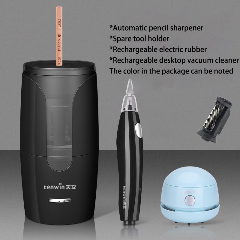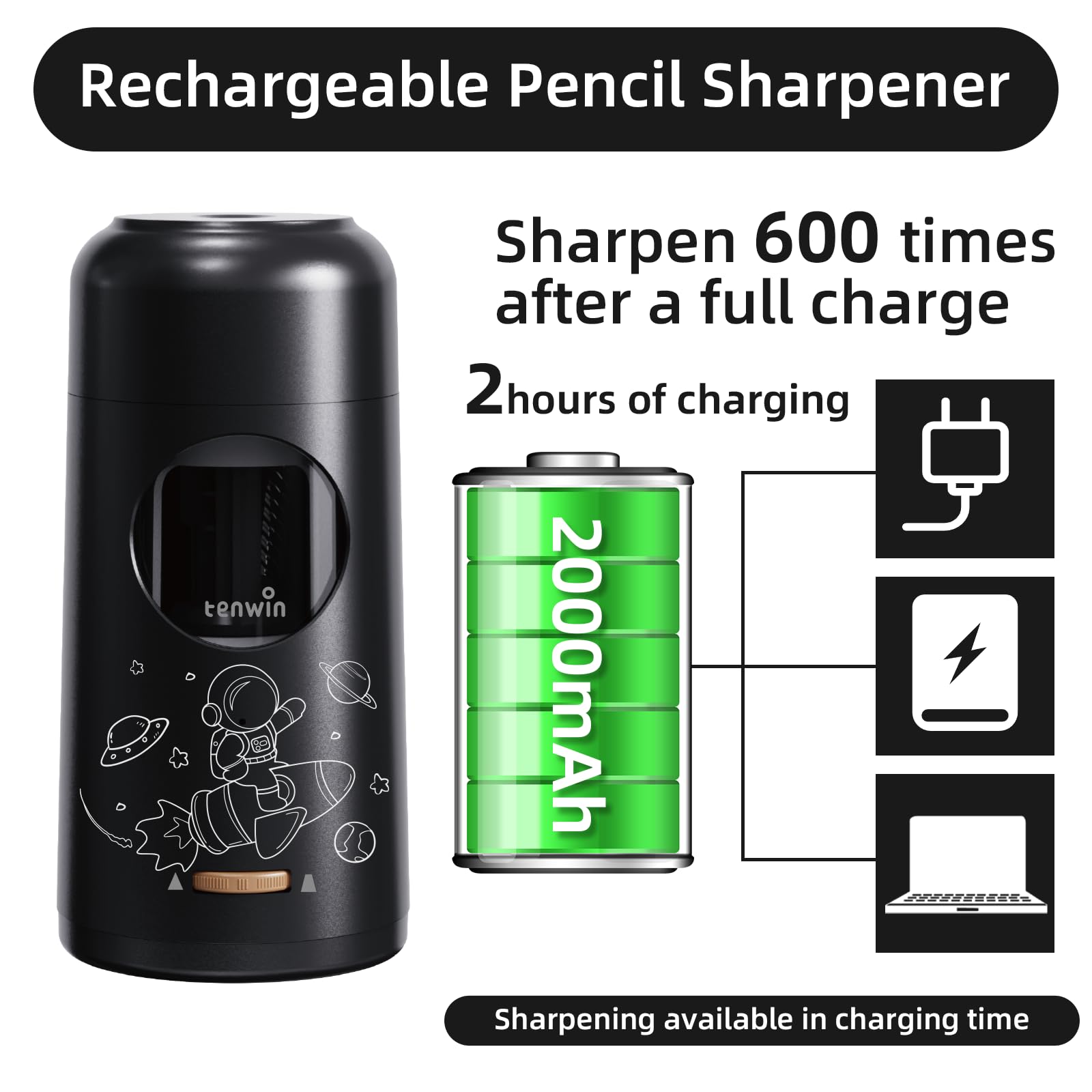 Grâce aux pièces de préhension du crayon, notre taille-crayon peut tailler les crayons courts (courts à 6,3 cm). Taille-crayon électrique Tenwin Rechargeable Entièrement Taille Crayon Afmat Notre taille-crayon est non seulement conçu pour les crayons durs, mais a également une fonction spéciale pour les crayons de couleur. Il vous aide à gagner du temps. Taille totale: 90*90*175mmNote: Les Dimensions sont mesurées manuellement. Il est normal d'avoir de légères erreurs. Veuillez vous référer au produit réel 1. mode de tension et de charge: câble USB, batterie au lithium de 2000 mAh. 2. Taille et Type : 6-12mm mètre, réglable. 3 forme et taille pour la pointe, (pointue, plate, émoussée Vous pouvez tirer le meilleur parti de vos crayons avant de les jeter. 3 niveaux de netteté pour plusieurs occasions : ce taille-crayon est équipé de pièces de réglage de la pointe du crayon qui permettent 3 niveaux de netteté du crayon (tranchant, moyen et émoussé) pour les utilisateurs. Shipenophy Gomme électrique Tenwin Gomme à crayon automatique... Lorsque le crayon de couleur est inséré, le taille-crayon aiguise le crayon avec une force douce pour empêcher la mine de se casser. Branchez le crayon dans le taille-crayon, et le taille-crayon saisira le crayon et commencera à l'aiguiser automatiquement. Taille-crayon électrique rechargeable avec lame hélicoïdale Après l'affûtage, le taille-crayon éjectera le crayon bien taillé pour vous. L'aiguiseur permet également de l'utiliser pendant la charge. Batterie rechargeable intégrée de 2000 mAh : ce taille-crayon électrique est livré avec une batterie au lithium de 2000 mAh qui peut tailler le crayon 600 fois après une charge complète. Taille-crayon disponible pour les crayons courts : comme avec les taille-crayons ordinaires, vous devez tenir le crayon pendant l'affûtage. Il est difficile de tailler des crayons courts que ce soit avec un taille-crayon électrique ou manuel.