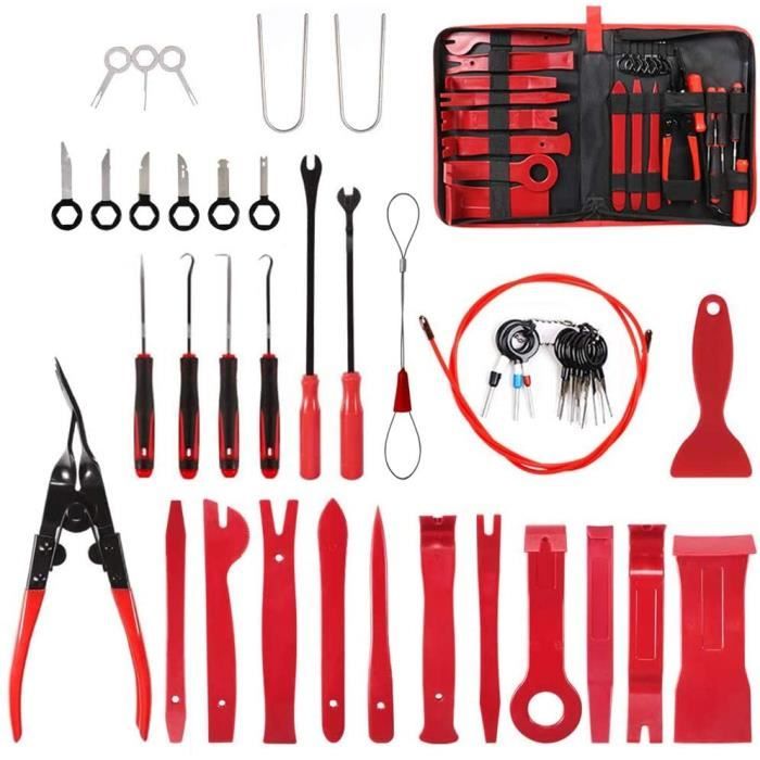 Numéro du modèle : kit de réparation de voiture. Type : boîte à outils de bricolage., Couleur principale : vert. 3 、 Cet ensemble d'outils multifonction est conçu pour tous les modèles de voitures, de bateaux et de caravanes avec une variété de formes et de tailles, même pour les zones difficiles à atteindre. Optez pour un kit de démontage de garniture qui vous facilitera la tâche. Ces coffrets d'outillage spécialement conçus pour les véhicules comprennent différents outils tels que des leviers, des crochets, des pinces, des tournevis spécifiques, etc. Ils vous permettront de retirer les garnitures intérieures et extérieures sans les... Description du produit : Outils Audio de voiture Outils de réparation de voiture Outils de modification de voiture Utilisation : ensemble d'outils ménagers., Contenu : boîte., Type : combinaison. Excellent pour les panneaux de garniture et le retrait des moulures. Choisissez, utilisez et entretenez comme un pro ! Démolition du panneau intérieur de la voiture, tableau de bord, zone de commande CD audio Pour retirer facilement et en toute sécurité le panneau radio, les garnitures, les moulures, les panneaux de porte et les tableaux de bord. Pour retirer les garnitures automobiles, les panneaux de porte et les façades de tableau de bord. Outil de démontage garnitures intérieur Outil Pour Démonter Garniture Voiture 30PCS Outils Pour Garnitures Outils Démontage Installation Garniture Intérieure Outil De Réparation De Garniture Kit d'outils de démontage de garnitures de voiture, 12 pièces, outil de réparation pour audio/radio/CD/GPS/pince de démontage de porte, pince de démontage... Kit de carrosserie idéal Nylon résistant aux rayures et aux chocs.