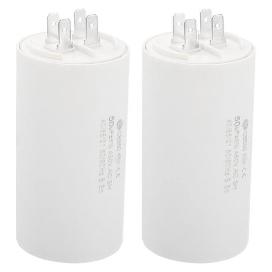 Convient pour le démarrage de moteurs monophasés avec une fréquence de 50 Hz et 60 Hz, tels que compresseurs d'air, pompes à eau, nettoyeurs haute pression, climatiseurs, machines à laver, moteurs, générateurs, HVAC, ventilateurs, perceuses, fendeuses, scies, meuleuses , etc. Instruction: La capacité n'est pas divisée en étapes positives et négatives et peut être connectée à volonté. Il offre une grande stabilité et une excellente dissipation de la chaleur, même à haute température. Condensateur Cbb60 450v PATIKIL Cbb60 40Uf Fonctionnement Condensateur, 2pcs Ac 450V Condensateur 40uf 450v Nous vous proposons un choix varié d PATIKIL CBB60 40uf Fonctionnement Condensateur,1pcs AC 450V 2 Fils 50/60HZ Cylindre 96x44mm pour Eau Pompes, Lavage Machines Moteur Démarrage : : Commerce, Industrie et ScienceÀ propos de cet article Convient pour le démarrage de moteurs monophasés avec une fréquence de 50Hz et 60Hz, tels que les compresseurs d'air, les pompes à eau, les nettoyeurs haute pression, les... Spécification :Modèle : CBB60 ; Matériau : Film polypropylène ; coque en polypropylène; Extrémité de câble : 4 broches ; tolérance : ± 5 % ; capacité nominale : 40 uF ; tension nominale : 450 VAC ; fréquence nominale : 50/60 Hz ; catégorie climatique : 40/85/21 ; taille du corps : 50 x 95 mm/1,95 x 3,71 pouces ( D x H ); Pack avec 2pcs condensateur CBB60Avantage :Ce condensateur de fonctionnement CBB60 a des caractéristiques de petit volume, léger, faible perte, fort capacité de surcharge, excellentes performances électriques, performances d'isolation fiables et courant avec une bonne résistance aux chocs. Ce condensateur CBB60 a des caractéristiques de petit volume, léger, faible perte, forte capacité de surcharge, excellente performance électrique, performance d'isolation fiable et courant avec une bonne résistance aux chocs REMARQUE: Veuillez faire attention à ne pas dépasser le courant ou la tension maximale lors de l'utilisation. Modèle : CBB60 ; Matériau : Film de polypropylène ; Coque en PP ; Extrémité de fil : 4 broches ; Tolérance : ±5 % ; Capacité nominale : 40uF ; Tension nominale : 450VAC ; Fréquence nominale : 50/60Hz ; Catégorie climatique : 40/85/21 ; Taille du corps : 50 x 95mm/1,95 x 3,71 pouce (D x H) ; Emballage avec 2pcs Condensateur CBB60., Avantage : Ce condensateur de démarrage CBB60 présente des caractéristiques de faible volume, légèreté, faible perte, grande capacité de surcharge, excellentes performances électriques, performances d'isolation fiables et courant avec une bonne résistance aux chocs. Smiler cbb60 yüksek kalite 450V 20UF çok kapasitörler çamaşır makinesi kapasitör