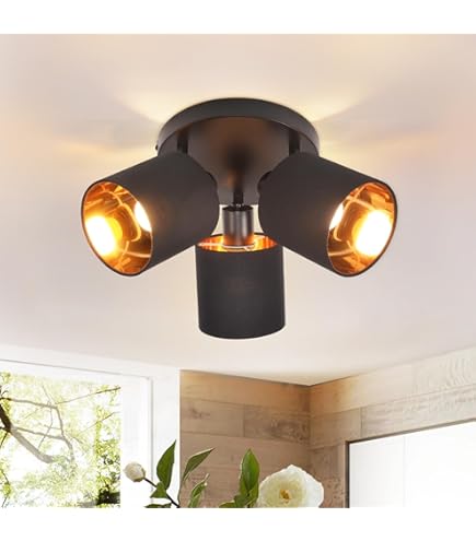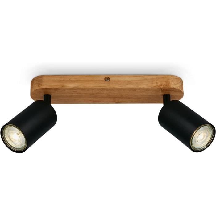 Plafonnier Chambre BRILONER - Plafonnier Rétro Avec Bois, 3 Flaes Vintage, 3x GU10 Douille, Spot LED Orientable Plafonnier Industriel Vintage Cette lampe spot noire et blanche avec une poutre en bois sombre apporte une ambiance à la fois noble et rustique dans votre espace de vie - le design noble avec les abat-jour rustiques en noir mat, attire rapidement l'attention. Vous pouvez déterminer vous-même la couleur de la lumière et la luminosité - les ampoules ne sont pas comprises dans la livraison. Spot-linge de plafond moderne a2 flammes en metal - Les taches en elegants optiques retro / vintage sont ideales en tant que lampe de salon ou lampe de chambre - les projecteurs sont tournants et pivulables et donc reglables individuellement Leuchten - Luminaire À Spots, Spot Plafonnier Rétro, Éclairage Plafonnier Vintage, Spots... Le spot orientable est particulièrement bien adapté comme lampe de salon, de couloir et de chambre à coucher Briloner 2922-025 Plafonnier rétro avec bois, 2 flammes Le spot avec culot E27 convient pour un maximum de 40 W et est livrée sans ampoule. Grâce aux deux abat-jours réglables au look mat, la lumière du plafonnier rétro peut être réglée individuellement Ce plafonnier rétro avec une couleur extérieure noire mate et une couleur intérieure blanche et une poutre en bois foncé, a un aspect très rustique et augmente le look vintage et industriel dans votre maison 40 W Abat-jour réglable Rustique Noir Avec son look rétro, le plafonnier apporte une touche de style à votre espace de vie.