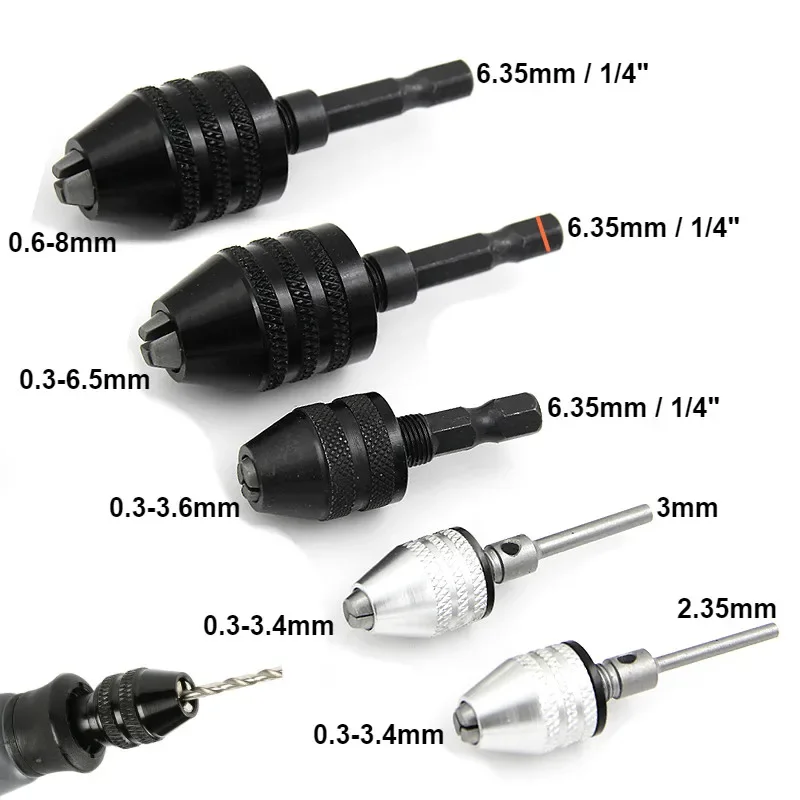 Pratique, en toute sécurité et rapidement. Plage de serrage : 0,3-8 mm., Longueur totale : 38 + 34 mm. Utilisez ce mandrin pour convertir n'importe quel tournevis sans fil ou tournevis à impact en perceuse ou meuleuse. 3.6mm, changement rapide, foret sans clé, mandrin, adaptateur à Facile à utiliser et à installer. Contenu de l'emballage : 1 mandrin de perçage. Conception sans clé] : Verrouille et libère sans effort les forets, transformant rapidement votre clé hexagonale à changement rapide en perceuse électrique. Adaptateur de mandrin fabriqué en alliage d'aluminium... Se verrouille facilement et libère les mèches. Fabriqué en alliage de qualité supérieure pour plus de durabilité et résiste à une utilisation quotidienne intensive. Taille spécifique comme sur l'image. Mandrin multi pour fraiseuse, tour, perceuse, machine à bois 2 mandrins de perceuse sans clé, un argenté d'une longueur de 2,7 pouces pour la plage de serrage : 0,3-6,5 mm et un noir d'une longueur de 1,97 pouces pour la plage de serrage : 0,3-3,6 mm. La conception classique à 3 mâchoires retient solidement une large gamme de forets hélicoïdaux Mandrin Pour Perceuse électrique 2 Pièces 6.35mm (1/4 Pouces) Foret Sans Clé Mandrin Hexagonal Mandrin Mandrin De Serrage Pour Perceuse Diamètre de la tige : 6,35 mm., Tige hexagonale.