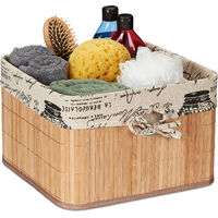 Matériaux : bambou, polyester, acier , Couleurs : blanc, gris En tiges de bambou flexibles avec insert en tissu amovible Lot de 3 : corbeilles de rangement en bambou, 3 tailles différentes - pour usage polyvalent Organisation Contenu de la livraison 1x étagère de salle de bain en pièces détachées Grâce à son design en bambou naturel, la boîte de rangement fait également bonne figure dans la salle de bain. Panier de rangement décoratif en bambou Panier en bambou en détail 10 ans d'expérience Polyvalent : tiroir d’étagère dans chambre d'enfant, boîte dans chambre à coucher ou déco dans salon Dimensions intérieures H x L x P : env., 18,5 x 30 x 30 cm , Charge maximale : env., 3 kg , Poids : env., 500 g Relaxdays Panier de rangement petite corbeille déco étagère 3 compartiments salle de bain HxlxP... Détails : dimensions HxLxP : env. Relaxdays Ensemble De 4 Paniers De Bambou - 20x31x31 Cm - Marron Dimensions H x L x P : env., 20 x 31 x 31 cm Panier de rangement en bambou Rangez et organisez votre intérieur avec style et méthode grâce à cette boîte de rangement. Boîte pliable avec fond renforcé Déposez vos petits objets du quotidien - produits cosmétiques, chaussettes, accessoires de couture ou outils de bricolage dans ce panier et mettez de l’ordre dans vos armoires, étagères, commodes etc. Relaxdays Meuble à Linge, 2 Paniers Coulissants, Surface De Rangement Etagere En Bambou Nature Et Gris 92740483