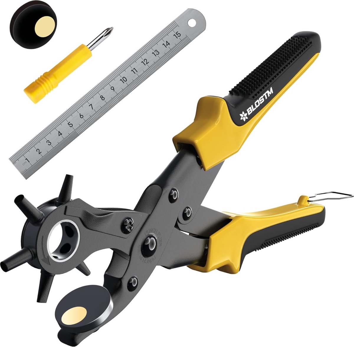 Idéal pour les ceintures, les sacs, les bandoulières, les selles, les colliers pour animaux de compagnie, les cartes, etc. Convient parfaitement pour les projets artisanaux, le cuir et le carton ainsi que pour percer des trous dans les ceintures. Produit non recommandé avec le cuir dont l’épaisseur est supérieure à 3 mm Conception ergonomique : Les pince perforatrice cuir sont équipées d’un mécanisme à double levier pour économiser de la force physique. Pince Perforatrice Cuir, Rotative Pince A Trouer Le Cuir Conception à barre parallèle : Les pince trou ceinture cuir sont conçues avec un mécanisme à double levier, qui nécessite plus de 70 % de force en moins que les pinces traditionnelles sans fonction de levier, ce qui permet d’économiser de l’énergie et d’améliorer l’efficacité du travail. Elan Pince Perforatrice Cuir, Pince Emporte Piece Cuir, Pince Ceinture, Poinçon Cuir... Perforatrice cuir trou : les eilleurs de 2024 sont sur La poignée absorbe les chocs, est antidérapante et ergonomique, ce qui la rend idéale pour les travaux longs et répétitifs sans douleur ni ampoules sur les mains. Les roulements en laiton sont épaissis pour assurer la sécurité.