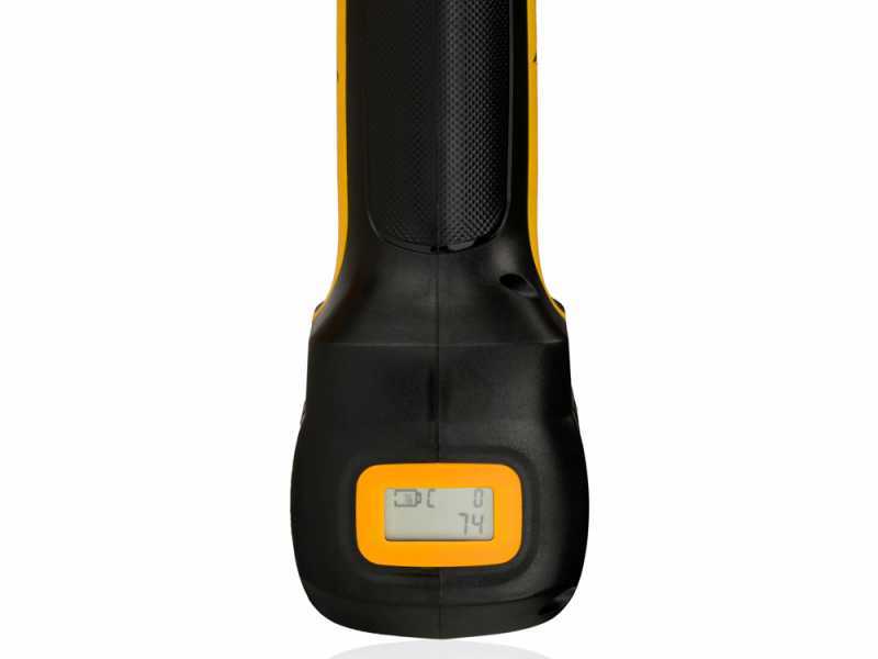 Volpi KV390 - Sécateur sans fil avec 2 batteries au lithium Le sécateur Volpi Original modèle PV295 est un sécateur électrique qui se caractérise par sa légèreté et sa praticité. Détails techniques : ciseaux Volpi PV295 max de coupe 25 mm moteur brushless puissance nominale 150 W tension nominale DC 14,4 V courant nominal 10,0 A protection courant courant ≥ 45 A poids 0,68 kg points de force : Applications : Oi : lames de coupe en acier et lame mobile interchangeable., Performances : coupe progressive. Sécateur électrique Volpi Pv295 Ciseaux À Batterie VOLPI PV295 Sécateur électrique Sans Fil Le PV295 est équipé de 2 batteries lithiumion d'une autonomie de 3,5 heures par batterie. Innovant : affichage des coupes totales et partielles et avec indicateur de niveau de charge de la batterie. Les ciseaux électriques PV295 sont légers et pratiques, idéaux pour une utilisation dans l'agriculture, l'élagage des parcs et le jardinage. Grâce à la batterie au lithium rechargeable et au moteur sans balais de 150 W avec système de mouvement à engrenages, ils assurent une puissance maximale avec des temps de charge rapides pour... Sécateurs électriques Volpi PV295 dès € 299 Durée de la batterie : fonction d'arrêt rapide en veille. Moteur brushless et système de mouvement à engrenages. Un écran avec indicateur du pourcentage de la batterie est fourni en standard. Garantit un travail précis et continu grâce à la batterie au lithium rechargeable et au moteur sans balais de 150 W assurant une puissance maximale, un temps de charge rapide.