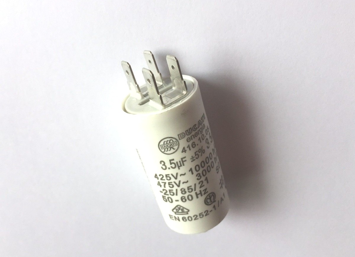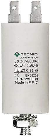 Capacité : 3,5µF., Tension : 450V~. Condensateur permanent 3,5µF 450V à câble 25x55mm - DUCATI Température de fonctionnement : -40 °C à +70 °C. Condensateur 3uf TECNID MG8035 Permanent Pour Moteurs 3,5µF 450V. Écrou M8 Puissance. Le Condensateur 8uf Son application principale se trouve dans les moteurs monophasés et il peut également être utilisé dans des circuits de commutation, d'amortissement et d'applications générales. Capacité : 3,5µF. Tension : 450V~. · Dimensions externes (diamètre x hauteur) : 30*57mm. · Raccordement électrique via des bornes faston de 6,4 x 0,8 mm. Fixation... Condensateur de démarrage pour moteurs électriques, 450V, capacité : 3,5µF, 4 broches / M8 Son application principale se trouve dans les moteurs monophasés et il peut également être utilisé dans des circuits de commutation, d'amortissement et d'applications générales., Capacité : 3,5µF., Tension : 450V~. Fixation mécanique à l'aide d'une tige filetée et d'un écrou M8., Tolérance 5 %.