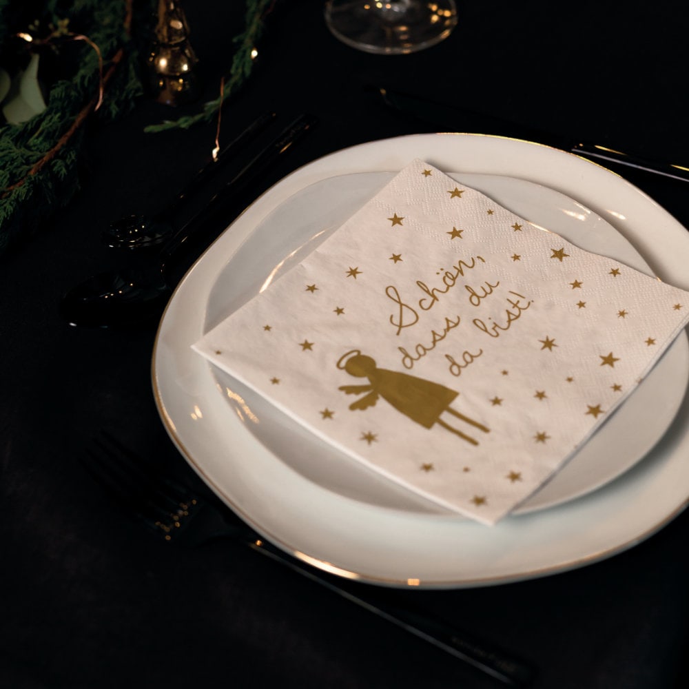 3 couches, 20 pièces dans un sachet en plastique. Papier Servietten Schön das du da bist 20er Set ca. 33 cm weiß/sc... Pack of 80 Serviettes Schön DASS Du Da Bist Heart White | 3-Ply Paper Napkins Wedding | Table Decoration for Christening | Communion | Confirmation Couleur : blanc/gris, 33 x 33 cm. Schön, Dass Du Da Bist! ️ Grafik Werkstatt Ces serviettes sont idéales pour décorer votre table. Le paquet contient 20 serviettes en papier qui donneront une note rafraîchissante à vos plats et enchanteront vos invités. Matériau: papier tissu Taille: 33x33cm Contenu: 20 pièces Nombre de couches: 3 Marque ppd Matériau Tissue Motiv Text Taille: 33x33cm Find similar Vous pourriez être intéressé Meilleures ventes Les plus... Serviettes en papier blanc/gris : environ 33 x 33 cm, 3 couches, 20 pièces dans un sac en plastique. Jolies serviettes en papier avec inscription en allemand