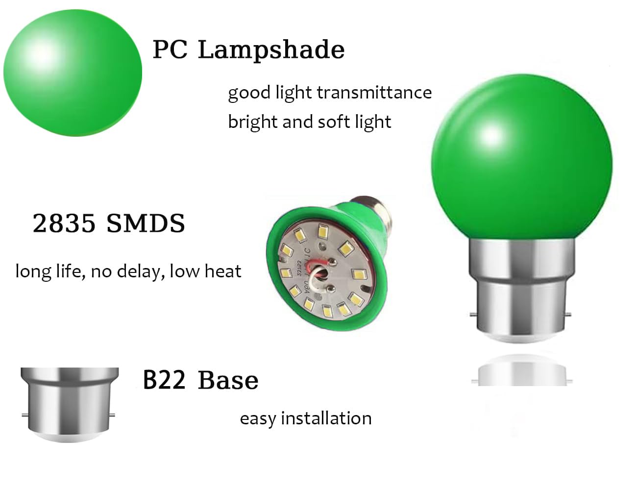 Source lumineuse : LED de qualité supérieure de couleur blanc chaud 2700 Kelvin, le blanc chaud est un blanc qui tire sur le jaune. 1 W émettant une lumière de 100 lumens, maintenant notre ampoule de 1,5 W est de 150 lumens, équivalent à une ampoule halogène de 15 W, ce qui permet d'économiser 80 % de consommation d'énergie, le meilleur rapport qualité/prix Les ampoules LED G45 non dimmables sont un excellent moyen d'ajouter de la couleur à l'éclairage décoratif et saisonnier. · L'ampoule est utilisée en intérieur... Largement utilisé L'ampoule est destinée à une utilisation en intérieur pour la maison, la décoration de chambre d'enfant, hôtel, fête, karaoké, bar, discothèque, pub, café, Noël, Thanksgiving, Nouvel An, Saint-Valentin et fête d'anniversaire, décoration de restaurants comme lumière ambiante/lumière ambiante. Données techniques et dimensions : L'ampoule mesure 79mm de hauteur pour 45mm de diamètre, elle est de type G45.En plastique blanc le globe cette ampoule est très résistant, le culot lui est en métal la consommation est de seulement 1W et la tension de fonctionne 230V. Grâce à la lumière non vacillante de l'ampoule, vos yeux peuvent se détendre. Ampoules LED B22 blanc chaud Facile à installer Vous n'avez besoin que d'une base B22, vous pouvez l'ouvrir. Caractéristiques : Culot : B22 , Puissance : 2 W , Lumineux : 200 lumens , Matériau : polycarbonate Dimensions : 45 mm x 70 mm Ampoule De Noel Guirlande Lumineuse Intérieur Et Extérieur, Guirlande Guinguette De 30 Ampoule Pour Guirlande De Noel Les ampoules LED G45 à intensité non variable sont un excellent moyen d'ajouter de la couleur à un éclairage décoratif et saisonnier. Montage rapide des guirlandes guinguette avec cette ampoule B22 G45 en plastique anti chocs. Puissance 1 watt émise par la LED blanc chaud 2700K qualité professionnelle En outre, un indice de rendu des couleurs de 80+ assure une reproduction naturelle des couleurs et un paysage idyllique environnant. Puissance lumineuse de 80 lumens pour 1W de consommation. Tels que les lampes murales, les lampes de rue, les lampes de jardin, etc. Économie d'énergie Faible consommation d'énergie, économie d'énergie, durable et facile à utiliser. Différents choix de couleurs Ampoule de couleur B22 G45 2 W, disponible en rouge, jaune, bleu, vert, rose, violet, blanc froid et blanc chaud. Lot de 5 Ampoules LED culot B22 à baïonnette forme Mini Globe 5W Blanc Une ampoule B22 à baïonnette blanc chaud 2700 kelvins de forme balle 45mm, idéale pour guirlande guinguette de qualité professionnelle. Tension : AC 220 V-240 V L'ampoule peut être utilisée dans des luminaires extérieurs, elle dispose d'un abat-jour en PC imperméable et incassable.