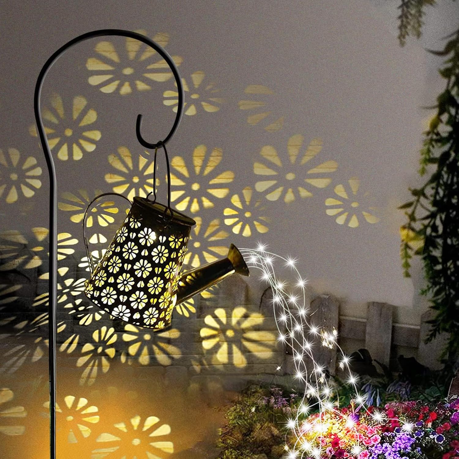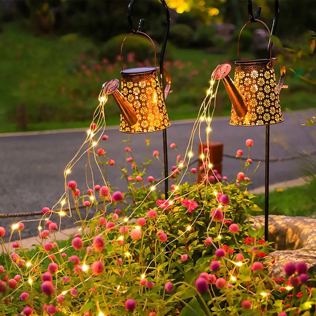 Le capteur automatique s'allume à la tombée de la nuit, projette des motifs de rêve parfaits pour éclairer des arrosoirs de jardin ou des arrangements de pots de fleurs à lumière solaire Arrosoir solaire d'extérieur avec lumières en cascade, arrosoir en métal avec crochet cardinal, boule de fée, décoration de jardin solaire, décoration imperméable pour cour, porche, terrasse, allée, jardinage, cadeau Sans fil, facile à dépoussiérer et à déplacer vers d'autres endroits. Lanterne Solaire Exterieur Arrosoir Solaire Avec Guirlande Lumineuse - Du00e9coration De Jardin Décoration Extérieure Arrosoir Lumineux Solaire Jardin Arrosoir Solaire Avec Lumières De Jardin Et Statues De Fées Arrosoir Solaire Extérieur Sûr et étanche : les lampes solaires d'extérieur sont perforées avec une feuille de fer épaisse de haute qualité et traitées avec prévention de la rouille. Si vous avez des questions sur les lampes de jardin Ostritec, veuillez contacter notre équipe de service et nous vous répondrons dès que possible. Fabrication exquise, bords lisses, évite les rayures, très sûr et imperméable, design creux augmente la beauté lumineuse. Il n'est jamais démodé. C'est également un cadeau de jardinage unique pour votre famille et vos amis pour la fête des mères, Thanksgiving, Noël, un anniversaire, le Nouvel An et les fêtes. Lot De 2 Arrosoirs Solaires De Décoration De Jardin, Lanternes Solaires Rétro En Métal à Suspendre Avec Guirlandes Lumineuses Pour Extérieur, Porche, Pelouse... Arrosoir solaire avec lumières : l'arrosoir solaire dispose de 6 guirlandes lumineuses scintillantes avec 36 ampoules LED lumineuses, le fil lumineux mesure 60 cm de long, qui peut être facilement plié et façonné dans n'importe quelle forme que vous aimez, parfait pour le bricolage.