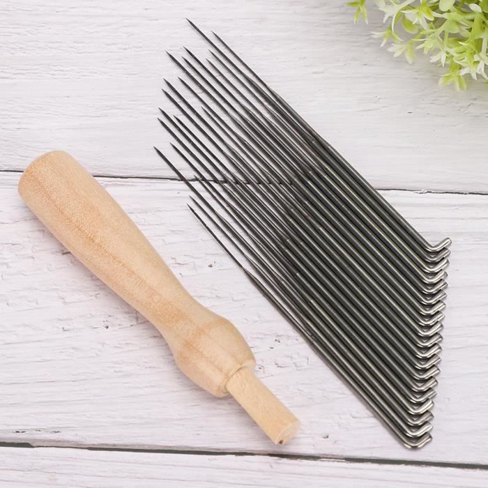 Caractéristiques : Ces aiguilles à feutrer en laine avec trois épaisseurs d'aiguilles différentes répondent à vos besoins lors de la fabrication de différents petits animaux, poupées, jouets et autres travaux manuels. Lorsque vous insérez l'aiguille, évitez de secouer l'aiguille d'un côté à l'autre pour changer la direction de l'aiguille, sinon l'aiguille peut facilement se casser. Le kit d'aiguilles à feutrer à sec est fabriqué en fer de qualité supérieure et en bois de hêtre massif pour une longue durée de vie. Trois aiguilles affûtées avec précision - Aiguilles épaisses, moyennes et fines - Soutiennent chaque étape, de la formation grossière au ponçage fin. LUMOOM Lot de 30 aiguilles à feutrer, 3 tailles, avec 3... Les aiguilles grossières conviennent au feutrage de grands produits finis, tels que toute la surface ; les aiguilles moyennes conviennent pour feutrer des pièces de petite à moyenne taille ou des pièces détaillées de gros produits finis. Décorez votre maison avec ce kit de feutre de laine multifonctionnel, faites de beaux cadeaux et accessoires, découvrez votre créativité. - La poignée en bois est merveilleuse pour accélérer le processus de feutrage à l'aiguille. Caractéristiques : l'aiguille à feutrer de laine peut facilement percer le matériau et terminer le travail avec précision et délicatesse. Les aiguilles fines sont utilisées pour feutrer des pièces partielles ou détaillées. Spécifications: Matériaux : métal et bois. APPLICATION : cette aiguille à feutrer de laine convient au feutrage de laine fait à la main. Kit d'aiguilles à feutrer - Aiguilles à feutrer à sec avec aiguilles de 3 Outils Pour Feutre à L'aiguille Accessoire Laine Feutrée Kit Aiguilles à Feutrer Laine - 38 Aiguilles Coussin Mousse Pour Feutrage à Sec Accessoires Laine Feutrée Kit De Feutrage à L'aiguille Remarque : il y a un peu de gris fer sur la surface de l'aiguille à feutrer, veuillez l'essuyer avec une serviette ou un chiffon avant utilisation.