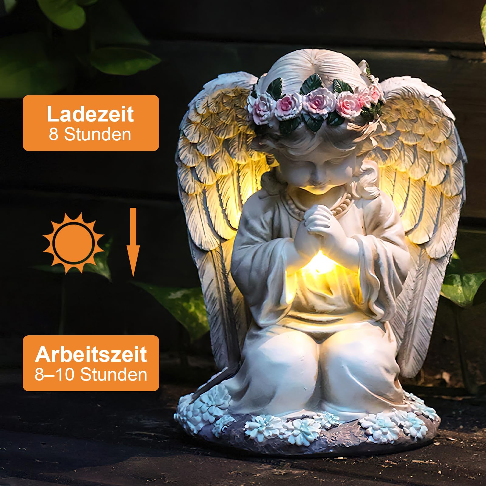- Kit comprenant deux lampes séparées - équipées d'un détecteur crépusculaire - autonomie jusqu'à 8 h - batterie rechargeable interchangeable Lampe Solaire à LED Ange Gardien,Lampe funéraire Sculpture de Fée Grâce à la technologie solaire intégrée, la lampe solaire LED 52854 fonctionne indépendamment de toute source d'alimentation externe, ce qui permet de la placer où vous le souhaitez. Pour la décoration de jardin, terrasse, balcon, chambre, rebord de fenêtre, etc. Et pendant les nuits d'été chaudes et sèches, il n'y a aucun risque d'incendie ! Utilisable également à l’extérieur : L'ange gardien en polyrésine résiste à toutes les intempéries et résiste au vent et aux intempéries. Pour une ambiance de rêve – apporte une lumière chaude dans votre vie. L'ange gardien paisible assure une décoration élégante et de belles heures dans une ambiance de rêve. Il est assis sur un cœur avec l'inscription « Ein Engel schütze Dich ». Présentation du produit Lampe Funéraire : Lampe Solaire Modèle Ange Gardien 7 Led, 20 Cm, Ip44 [H2552] Pour la décoration de jardin, terrasse, balcon, appartement, maison, etc. Authentique auréole lumineuse avec 7 LED Sans piles charge pendant la journée par module solaire Pierre artificielle résistante aux intempéries avec caractère... Chargement par panneau solaire : pas besoin de piles ou de raccordement électrique Module solaire (IP44) protégé contre les projections d'eau Dimensions : Hauteur : 20 cm - Dimensions du socle : 13,5 x 12,5 cm - Poids : 393 g. Ange Solaire Lunartec Lape De Jardin Solaire à LED Sur Pied Angel Gardien Solaire Il est donc également idéal pour une décoration funéraire., -- -- - Ainsi, vous ne serez pas enfumé. Décoration de jardin solaire - Également pertinente ou appropriée pour : Éclairage extérieur, lampes solaires, Noël, lanternes funéraires, lampes funéraires. Pour la décoration de jardin, terrasse, balcon, appartement, maison, etc. Donnez de la chaleur à vos soirées : Surtout dans les saisons sombres, nous recherchons la chaleur et la sécurité. Apportez une lueur chaleureuse à vos soirées : Surtout pendant la saison sombre, nous aspirons à la chaleur et à la sécurité. L'ange gardien paisible assure une décoration élégante et de beaux moments dans une ambiance rêveuse. Capte la lumière le jour, brille la nuit : Grâce au panneau solaire, l'ange décoratif est toujours prêt à vous ravir lors des longues soirées avec sa... La combinaison de matériaux de haute qualité et d'un design bien pensé fait de cette lampe un choix durable et efficace pour l'éclairage extérieur. Que ce soit dans votre jardin, sur la terrasse, sur le balcon ou autour de la maison, votre nouvel ange gardien est également une décoration attrayante pour la journée. Pierre artificielle lumineuse avec 7 LED - Résistant aux intempéries : Polyrésine au look antique Alimentation : batterie NiMH interchangeable type AA/Mignon, 1,2 V, 600 mAh.