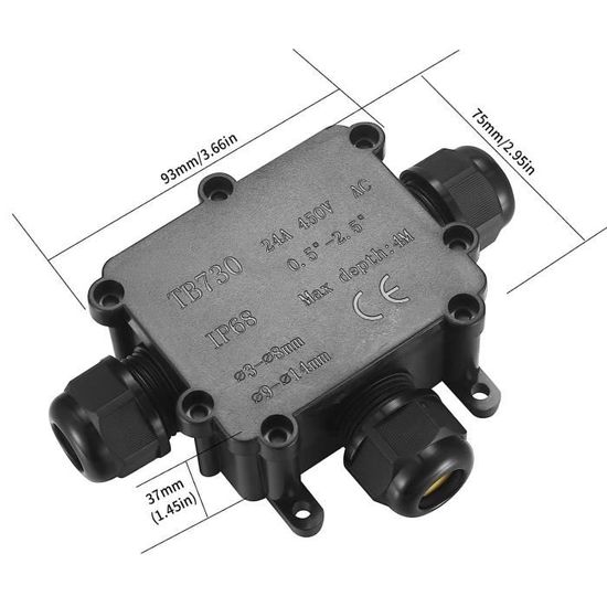 La boîte de jonction bidirectionnelle est le meilleur choix pour connecter des lumières extérieures et d'autres appareils. AOZBZ Boîte de jonction étanche IP68 - Connecteur de câble électrique étanche pour câbles de 5 à 9 mm de diamètre (1 pièce, 3 entrées) AT03 Boîte de jonction supérieure à 3 voies, connecteurs Fabriqué en matériau PA66 imperméable et ignifuge de haute qualité, il présente une résistance au feu et aux chocs. Ces caractéristiques garantissent une utilisation dans des environnements difficiles, qu'il s'agisse de soleil ou de pluie. Avec une plage de température de fonctionnement de -40℃ à +105℃ et des dimensions extérieures de 130x95x40 mm, il offre des performances et une polyvalence maximales. La bague d'étanchéité en silicone étanche protège des rayons UV, du soleil et de la pluie. Il offre des solutions flexibles pour différentes applications et garantit une connexion sécurisée et durable. ⚡ Haute performance et polyvalence : la boîte de jonction est conçue pour un courant nominal de 40 A et une tension nominale jusqu'à 450 V. Il prend en charge des diamètres de câbles de Ø5 mm à 9 mm et des sections de câbles de 0,5 à 6,0 m². Il est équipé de 4 vis et de bornes à 1 broche qui permettent une installation facile. Ip68 Boite De Jonction AOZBZ 3 Voies Boîte De Jonction étanche IP68, Boîte De Jonction étanche, Boîte De Jonction électrique, Boîtier De Raccordement électrique 3 Voies Pour Câble De 5 à 15mm (1 Pièces Boite Derivation Etanche Boîte à trois voies pour l'épissure étanche de câbles électriques de 4 à 14 mm de diamètre. Il contient une fiche d'épissure à 4 contacts avec fixation par... Il assure une connexion sécurisée et fiable. 🔧 Installation facile et protection complète : la boîte de jonction peut être facilement installée sous terre et offre une protection complète pour vos lignes de câbles.