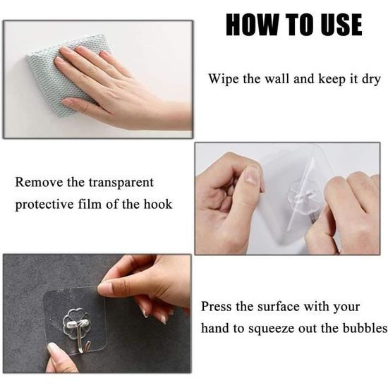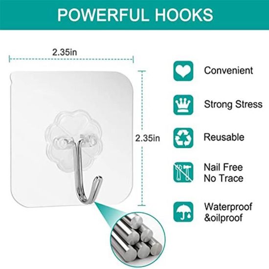 LFBEST 20 pièces. Il est souvent utilisé sur des surfaces dures telles que le verre, les carreaux de céramique, le bois, le papier peint, le métal, etc, et peut accrocher des serviettes, des vêtements, des clés, etc. 20 pcs Crochets muraux | Adhésif Forte Nail Libre Réutilisable Cercle magque et crochet tunsen double – Artoft Plus la surface est lisse, plus l'adhérence est forte. Crochet Adhésif Charge Lourde 12 Pièces Crochet Adhésif Transparent, 10Kg(Max) Crochet Autocollant Crochet Repositionnable Hooky Crochet magique, crochet autocollant, crochet adhésif transparent, sans clous, amovible, pour cuisine, salle de bain, mur de porte, max., 5 kg Il est très bien adapté pour accrocher des accessoires de douche dans la salle de bain. 【Imperméable et résistant à l'humidité】: le crochet magique a une excellente performance étanche, résistant à l'humidité et à l'huile, les crochets magiques ne tombent pas même dans un environnement humide. Large Éventail D'utilisations : Les clou vis auto-adhésif en crochet conviennent aux surfaces en marbre, au verre transparent, aux surfaces en bois, au verre...
