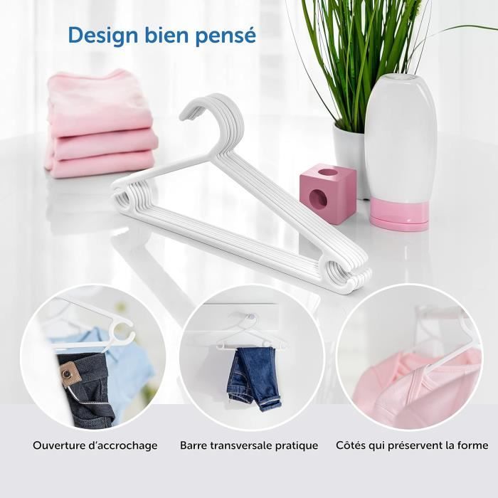 Économie d'espace , Antidérapante , Slim Nos top 10 des Cintres Hangerworld en France - Décembre 2025 Il vous permet de gagner de la place, car vous pouvez y accrocher 4 jeans en même temps. D'un autre côté, si vous ne souhaitez pas les rabattre, alors optez pour le modèle à pince de Hangerworld. Pour l'utiliser, vous n'avez qu'à refermer le cintre sur la ceinture Ceintres Pour Enfant Lot De 50 Cintres Roses En Plastique Enfant/bébé - Au Quotidien Cintres Plastique Pack de 18 cintres en plastique blanc pour les vêtements des plus petits. Profil plat qui permet d'économiser de l'espace dans la garde-robe et de ranger...