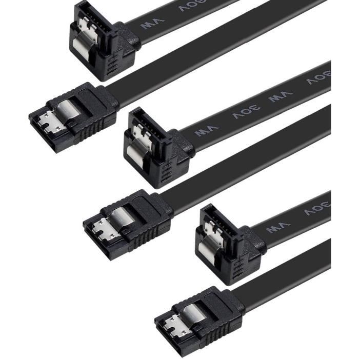 JacobsParts Câble SATA à angle droit à 90 degrés conçu pour connecter les cartes mères et les contrôleurs hôtes à des disques durs SATA internes et lecteurs DVD. Câble SATA à angle droit à 90 degrés conçu pour connecter des cartes mères et des contrôleurs hôtes à des disques durs SATA internes et des lecteurs DVD. Le câble de données SATA plat dispose d'une gaine flexible qui permet une installation efficace et organisée, même dans les boîtiers d'ordinateur compacts. Carte Pcie X1 Vers Sata 4 Ports, Contrôleur Sata 3.0 6 Gbit-S, Comprend Le câble Ugreen SATA 3 est conçu pour connecter des cartes mères et des contrôleurs hôte à des disques durs internes Serial ATA et des lecteurs DVD, améliorant rapidement votre ordinateur pour un stockage étendu Lot De 3 Câbles SATA III Avec Loquet De Verrouillage à 90 Degrés Droit Vers Angle Droit 6 Gbit/s HDD SDD SATA Câble De Données 45,7 Cm Pour Disque Dur Le connecteur à angle droit encliquetable est un outil indispensable pour sécuriser les connexions difficiles d'accès dans les espaces restreints. Le connecteur à angle droit assure une connexion sécurisée dans les espaces restreints. Vitesse SATA III ultra-rapide allant jusqu'à 6 Gbit/s et offre des performances supérieures pour les configurations de jeu et RAID personnalisées. Ces câbles sont compatibles avec une grande variété d'appareils SATA courants, ce qui en fait un ajout polyvalent et précieux à votre kit d'outils techniques. Rétrocompatible avec les disques durs SATA I, II, III pour des connexions sécurisées et des transferts de fichiers rapides et fiables.