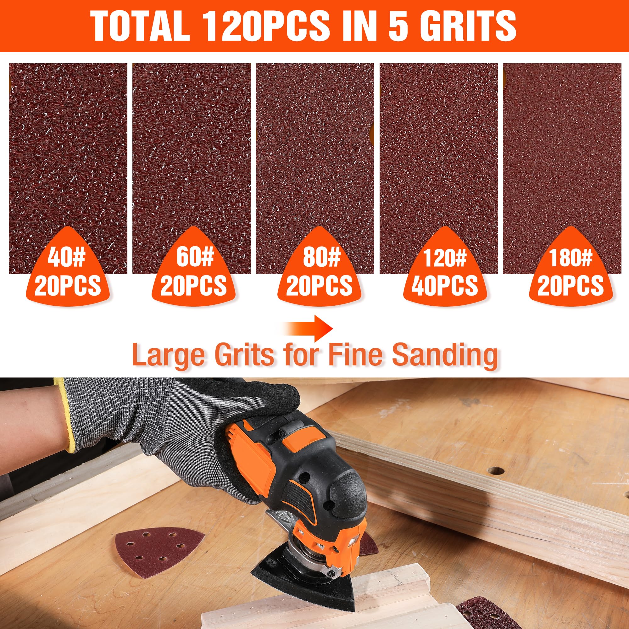 Convient pour une variété d'outils : la taille et le design standard rendent le tampon triangulaire en papier abrasif adapté à la plupart des outils de ponçage détaillés, pratique pour les utilisateurs pour changer rapidement. Caractéristiques du produit : Matériaux : oxyde d'aluminium, plastique., Couleur : marron. Le kit de patins de ponçage triangulaires multifonction peut fermement fixer et ne glisse pas pendant le travail, améliorant l'efficacité et la sécurité du travail. Lot de 60 patins de ponçage triangulaires multi-fonctions Facile à identifier : la marque de taille du grain est imprimée au dos de chaque tampon de ponceuse de souris, ce qui est pratique pour une identification rapide et la sélection du tampon de ponçage approprié pour améliorer l'efficacité du travail. Ensemble complet inclus : les patins de ponceuse de souris contiennent 6 types de grains de sable : 60#, 80#, 120#, 180#, 240#, 320#, 10 grains de chaque grain de sable, et chaque taille de grain de sable du papier abrasif multifonction à boucle Velcro est imprimée avec un logo au dos pour une identification et une utilisation rapides. Ensemble de papier abrasif triangulaire, mélange de 60 à 240 grains, papier abrasif, multi-outils oscillants, ponceuse tative de souris, accessoires pour outils... 【Retrait rapide de la poussière】Le papier abrasif pour ponceuse à paume adopte un design efficace pour enlever rapidement la poussière générée pendant le travail et réduire le blocage. Le papier abrasif pour ponceuse à paume a une dureté élevée et antistatique Support de papier abrasif : 8,5 x 8,5 cm. Large application : le tampon de papier abrasif triangulaire est adapté pour meuler et polir le métal, le bois, le caoutchouc, le plastique, la pierre, le verre et d'autres matériaux, le papier abrasif pour répondre aux besoins de différents scénarios. Conception Velcro : le papier de verre pour souris a un support Velcro et une conception triangulaire, qui peut être facilement et rapidement fixé à la ponceuse, facile à installer et à enlever, et peut poncer efficacement les coins et les bords serrés Papier Triangulaire Pour Outil Multifonction Lot De 50 Feuilles Abrasives Triangles Papier Poncage Triangulaire, 92 Papier Verre Bois Patins de ponçage triangulaires : 8,5 × 8,5 cm.