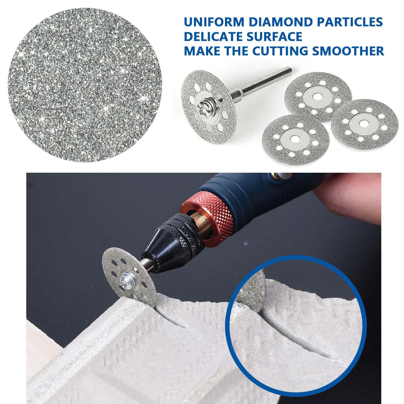 Large application : notre disque à tronçonner de 1 mm est parfait pour couper le métal, les pierres précieuses, le jade, le carrelage, la brique et plus encore. Avec un diamètre de 22 mm et une épaisseur de 0,6 mm, elles sont parfaites pour les travaux de précision tels que la réparation de carreaux ou les coupes dans le métal jusqu'à 1 mm. Disque à Tronçonner Dur Compatible Avec Les Disques à Tronçonner Dremel - Lot De 20 Disque Dremel Le mandrin de 3,0 mm assure une fixation sûre. Compatible avec Dremel 3000, dremel versa, Speedclic et autres accessoires Dremel. Que vous ayez des questions sur l'utilisation ou que vous rencontriez des difficultés techniques, nos professionnels sont à votre disposition à tout moment. Le kit contient 20 disques à tronçonner diamantés et 4 mandrins pour une flexibilité maximale. Disques à Tronçonner Renforcés DREMEL 426 (ø 32mm) - Lot de 5 - Coupe Métaux, Bois et Plastiques Compatibilité : ce disque à tronçonner Dremel est compatible avec les systèmes Dremel 3000, Versa et SpeedClic. Durabilité : notre disque à tronçonner diamanté offre une durabilité supérieure grâce au revêtement de film de diamant. Obtenez des coupes nettes avec notre disque diamanté. Lot de 20 disques pour effectuer des coupes droites et des entailles dans tous types de métaux, notamment l'acier trempé, les tôles ou l'aluminium. A utiliser avec le mandrin 402 : pour le fixer, dévissez la vis en haut du mandrin avec une clé, faites passer la vis à travers le trou médian du disque et revissez-la ensuite sur le mandrin Kit de disques de coupe diamant émeri 5mm, 22 pièces + 1 mandrin pour Dremel Le disque à tronçonner diamanté est recouvert de fines particules de diamant pour une durabilité et une précision maximales. Obtenez maintenant l'outil ultime pour une précision et une efficacité optimales