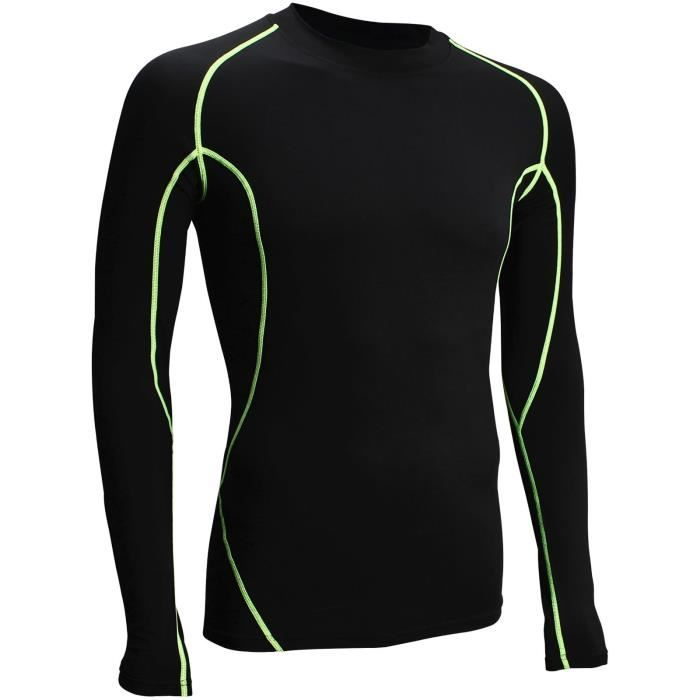 2 Pièces T-Shirts Manches Longues Homme Compression Running Maillot Sport Top Blanc