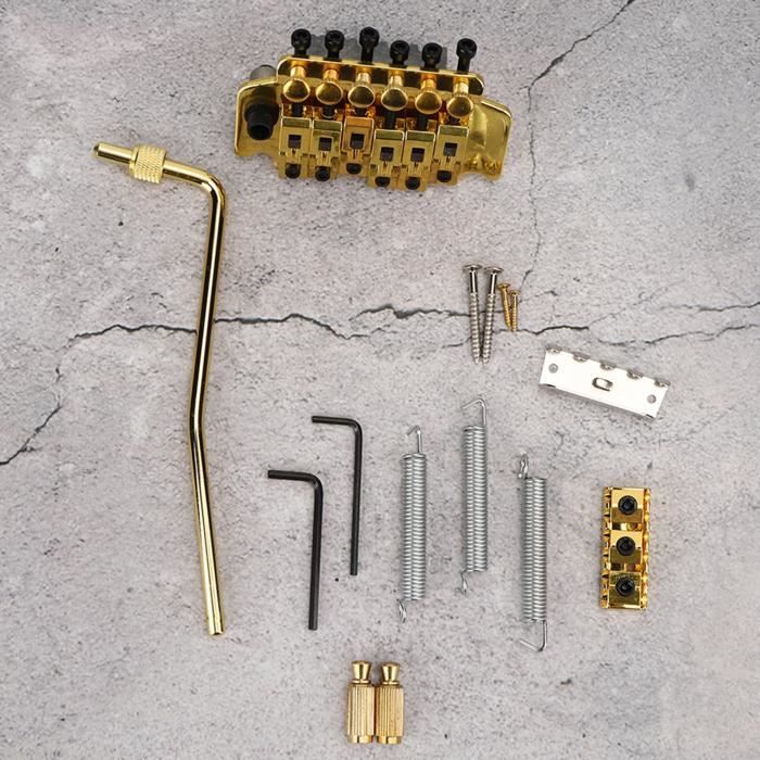 Diamètre du bras du bras : environ 6 mm, longueur du bras : 160 mm Longueur du bras : 160 mm. Couleur du pont trémolo : noir. Contenu de l'emballage : 1 pont de trémolo électrique., 3 ressorts. Max ShowKit - Guitare Électro-Acoustique Pack Débutant Ampli 40 Watts et Pupitre - Noire Dimensions du bloc trémolo (L x l) : 84 mm x 40 mm. Taille de la plaque de joint de cou (L x l) environ 64, 5 mm x 51 mm ; taille de la plaque de protection (L x l) environ 68 mm x 55 mm ; distance du trou de montage de vis 50 mm x 37 mm. Chevalet de trémolo de rechange pour guitare avec chevalet trémolo. Diamètre du bras : environ 6 mm. Superbe finition : conçu pour impressionner, ce système de trémolo pour guitare électrique dispose d'une superbe finition qui améliore l'esthétique générale de votre guitare. Remplacement parfait pour les guitares SQ ST 6 cordes : spécialement adapté pour les guitares SQ ST 6 cordes avec un pont trémolo, ce système sert de remplacement idéal pour les composants usés ou endommagés Caractéristiques de la taille : taille du bloc de trémolo (L x l) : 84 mm x 40 mm ; espacement des cordes : 10,4 mm. Bras de trémolo pour guitare électrique Réglage du son de la tension... 1 barre de trémolo (barre de whammy) 1 clé Allen Remplacement parfait pour les guitares SQ ST 6 cordes : spécialement adapté pour les guitares SQ ST 6 cordes avec un pont trémolo, ce système sert de remplacement idéal pour les composants usés ou endommagés. Espacement des cordes : 10,4 mm. 1 Set De Guitare Electrique 6 Cordes Tremolo Bridge Avec Barre Pour ST Caractéristiques : Matériaux : alliage, cuivre et acier.