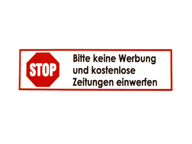 Matériau en aluminium : fabriqué en aluminium durable, le panneau publicitaire est imperméable, résistant au soleil et à la corrosion. Il aide à réduire les publicités indésirables et les livraisons inutiles et à garder l'environnement propre. 2 Stück Bitte keine Werbung, keine kostenlosen Zeitungen Schild Lot de 2 autocollants avec le blason d'Allemagne et numéro de département au choix pour plaque d'immatriculation. Option texte gratuite en français ou en langue locale (Deutschland Décollez simplement le film protecteur et appliquez-le sur une surface propre et lisse. Keine Werbung Und Kostenlose Zeitungen » - 65 X 25 Mm Il conserve sa qualité sans décoloration ni déformation, même en cas d'utilisation prolongée, et convient à différentes conditions environnementales. Montage facile : la plaque signalétique sans boîte aux lettres est équipée d'un dos autocollant solide et ne nécessite pas de perçage. Informations accrocheuses : le panneau « Bitte Keine Werbung » est gravé avec des messages clairs tels que « Pas de publicité » et « Pas de journaux gratuits ». 7 x Keine Werbung Aufkleber für Briefkasten (6,7 x 2,1 c klein...