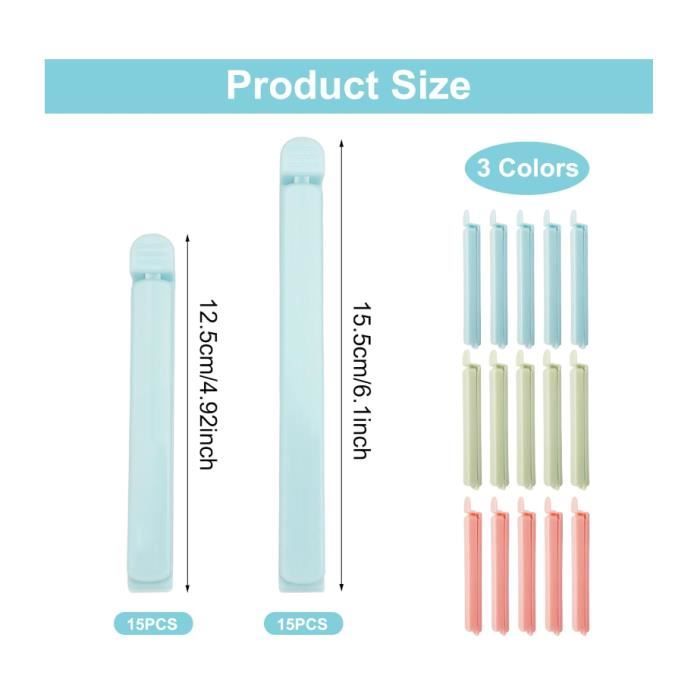 - Les clips en plastique pour sacs alimentaires sont faciles à utiliser, il suffit de les clipser pour garder les aliments frais. Conseils : Les mesures étant prises à la main, les tailles indiquées peuvent varier de 1 à 3 mm. Pince alimentaire personnalisée medium 8cm | Cadeau d’entreprise 2 tailles:Nous fournissons 2 tailles de clips de scellage en plastique, 40pcs de petite taille, 7cm de long, 20pcs de grande taille, 11cm de long... - Pinces alimentaires de 30 × 11 cm. Fermeture Sachet Alimentaire Lot De 39 Pince Sachet Alimentaire, 15/11/7 Cm Longueur Plastique Réutilisable Fermeture Sachet Pince Fermeture Sachet - Les clips de congélation sont fabriqués en polypropylène de haute qualité, durable et réutilisable. - Taille : 7 cm et 11 cm. - Applicable à différents sacs et différentes scènes. Ce lot de 60 clips de fermeture va révolutionner votre organisation en cuisine. Vous recevez 40 petits clips de 7 cm et 20 grands de 11 cm - de quoi s'adapter à...