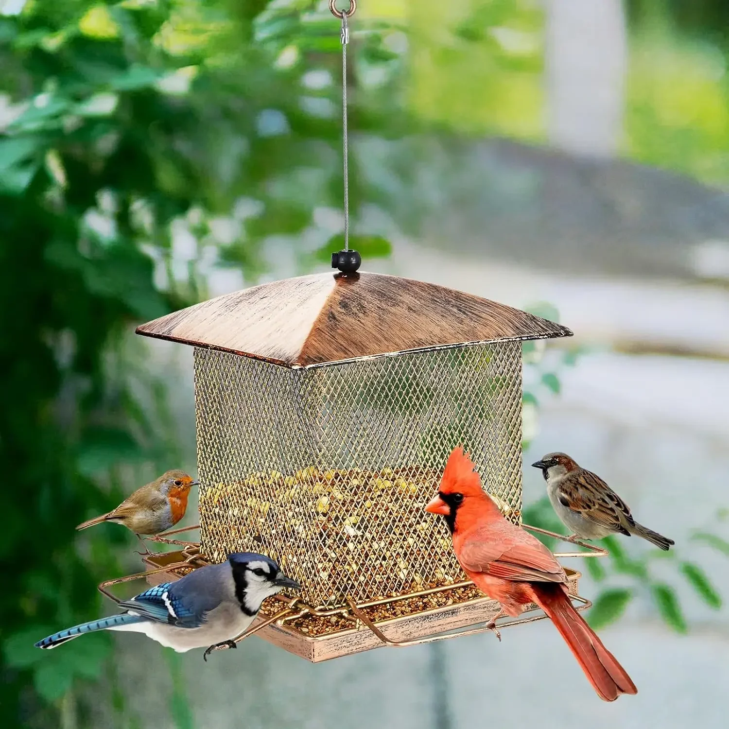 ★ Oiseaux cibles : cardinaux, geais, mésanges, moineaux, pinsons, sittelle, gros bec, pic, mésange, juncos, etc. Design à deux niveaux et style rétro : notre mangeoire à oiseaux à 2 niveaux au design unique offre une alimentation panoramique à 360 degrés. GAINSEN Mangeoire panoramique unique à 2 niveaux, mangeoire à oiseaux sauvages résistante aux écureuils, mangeoire à oiseaux rétractable en métal robuste, mangeoires décoratives pour oiseaux de jardin pour suspension en plein air. Facile à remplir et à nettoyer : cette mangeoire à oiseaux rétractable est plus facile à remplir avec des graines que d'autres mangeoires à oiseaux similaires, s'étire vers le haut pour installer 4 poteaux de perchoir et soulève le couvercle supérieur pour remplir de graines par le haut. Les oiseaux peuvent facilement accéder à la nourriture à partir des ports d'alimentation et des trous en maille métallique. ★ Graines de remplissage : tournesol, carthame, cacahuètes concassées, maïs concassé, noix ou graines mélangées. Nous vous recommandons de placer votre mangeoire à au moins 1,2 m du sol et à au moins 2,4 m de l'endroit où les écureuils peuvent sauter. ★ Taille : 25,4 x 25,4 x 30,5 cm, longueur du câble : 33 cm. À propos de la protection contre les écureuils : notre mangeoire à oiseaux est plus résistante aux écureuils que la plupart des mangeoires à oiseaux, mais elle ne dissuadera pas à 100 % les écureuils rusés. La mangeoire à oiseaux est livrée avec un crochet en S et une longue corde en fil d'acier, qui peut être facilement accrochée aux crochets de berger, aux crochets pour plantes, aux stations d'alimentation, aux branches. Mangeoire à oiseaux pour l'extérieur, anti-écureuil, mangeoire à Partagez quelques conseils d'alimentation des oiseaux avec vous : · Les oiseaux trouvent généralement leur nourriture à vue. Placer votre mangeoire là où elle sera visible pour eux devrait réduire le temps qu'il faut aux oiseaux pour commencer à se nourrir. Mangeoires à oiseaux en métal anti-écureuils Royaume-Uni : Mangeoires à oiseaux suspendues en métal, elles sont recouvertes d'une couche extérieure de laque pour améliorer sa durabilité, adaptées à tous les types de temps, et les écureuils ne peuvent pas endommager les mangeoires à oiseaux suspendues pour les petits oiseaux Le câble métallique est équipé d'un clip de verrouillage pour empêcher les écureuils de soulever le couvercle supérieur. Mangeoire Pour Oiseaux En Bois Mangeoire à Oiseaux Pour Suspension Extérieure, Mangeoires à Mangeoire Pour Oiseaux Fait Maison ★ Matériau : fer de haute qualité., ★ Capacité : 1,9 kg. Grande capacité et résistance aux déchets : cette mangeoire à oiseaux en maille est adaptée pour remplir le tournesol, le carthame, les cacahuètes fissurées, le maïs concassé, les noix ou les graines mélangées, et la grande capacité de 1,9 kg peut fournir de la nourriture aux oiseaux jusqu'à un mois, résolvant votre problème de remplissage fréquent des graines. La structure ronde rétro et l'apparence rouge attirent facilement les oiseaux sauvages tels que les cardinaux, les geais, les mésanges, les pinsons et les moineaux. Nos mangeoires à oiseaux utilisent des ports d'alimentation similaires aux mangeoires à oiseaux tubulaires afin que les écureuils ne puissent pas accéder aux graines et ne peuvent pas endommager le treillis métallique robuste. · Si les oiseaux n'ont pas encore commencé à manger, n'oubliez pas de garder les mangeoires propres et de remplacer les graines au moins une fois par mois. · Fournir plusieurs stations d'alimentation dans différentes zones de la cour pour répartir l'activité des oiseaux. ★ Caractéristiques : conception efficace anti-écureuils, facile à remplir et à nettoyer, pliable pour le rangement, antirouille, résistant à la pluie, aux UV, résistant au froid, résistant aux mastications, robuste et durable. Il dispose d'un câble métallique avec crochet en S, 1 housse de pluie, 8 ports d'alimentation, 4 perchoirs avec tasses à eau, 4 perchoirs et un plateau inférieur. Achetez Mangeoire à oiseaux anti-écureuils pour l'extérieur | Mangeoire en maille métallique à suspendre pour colibris en plein air | 4 ports d'alimentation...