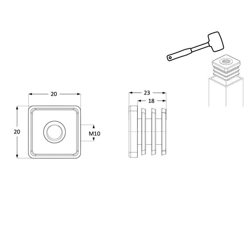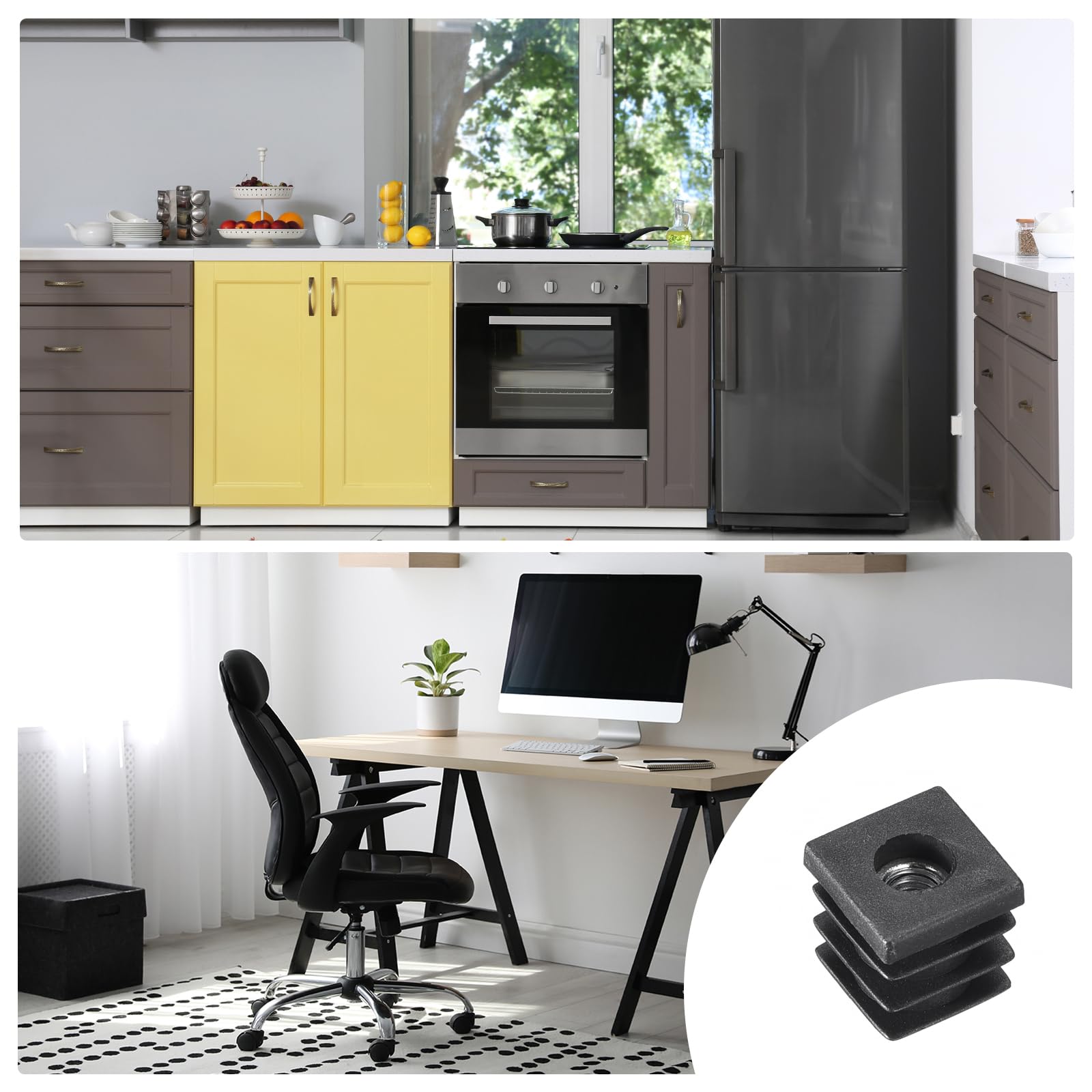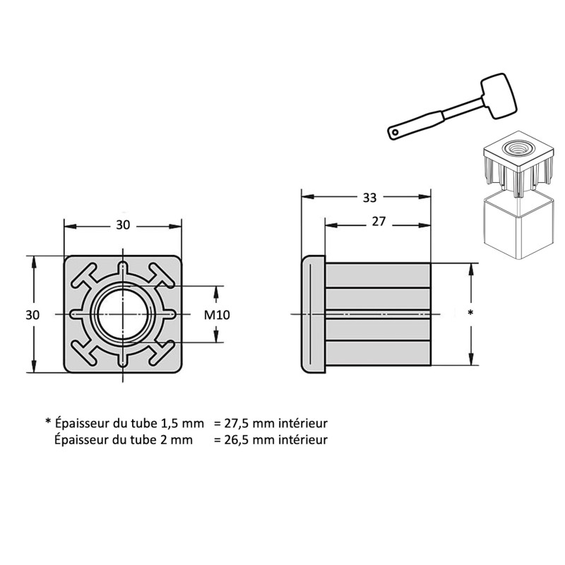 Description du produit Description:1., Matériau : L'écrou d'embout de tube est en plastique noir, avec filetage, peut être équipé de roulettes et de patins réglables, a une hauteur réglable, n'est pas facile à déformer et offre un soutien plus stable., 2., Effet : L'embout de tube fileté peut être utilisé pour une installation de roulettes facilitée ; choisir des pieds réglables pour l'équilibre, protéger le sol et réduire le bruit et les glissements., 3., Installation facile : L'embout de pied de chaise est doté de nervures, il suffit de les aligner avant de le taper en position. Installation facile : L'embout de pied de chaise est doté de nervures, il suffit de les aligner avant de le taper en position. Embout Carré Plastique à Lamelles NOIR pour tube 60 x 60 mm - embout carré noir - embout carré - embout Nos produits sont durables et légers, ils peuvent être utilisés comme pieds d'appui au sol ou en finition aux extrémités de tubes de différentes sections Épaisseur : 3 mm/0,12 ; Hauteur intérieure : 14 mm/0,55 ; Hauteur totale : 17 mm/0,67 ; Taille totale : 16x16 mm/0,63x0,63 (Lxl) ; Taille du filetage : M6 (Ne contient pas de pieds réglables) Embout De Chaise QUARKZMAN 6 Embouts Pour Tubes Carrés Avec Filetage M8, Pour Embout Chaise Les nervures assurent un ajustement sécurisé et évitent le besoin d'adhésifs supplémentaires., 4., Application : L'écrou d'embout convient aux meubles de bureau ou domestiques, tels que les équipements mécaniques, les équipements de fitness, les étagères, les supports TV, les tables, les étagères, les chaises de plage, les pieds de bureau, etc. Évitez de l'utiliser sur des revêtements de sol délicats ou inégaux pour éviter les dommages. Spécifications :Nom du produit : Embouts d'insertionMatériau : PlastiqueÉpaisseur : 3 mm/0,12Hauteur intérieure : 14 mm/0,55Hauteur totale : 17 mm/0,67Taille totale : 16x16 mm/0,63x0,63 (Lxl)Taille du filetage : M6Contenu de l'emballage :4 x Embouts de tube fileté (Ne contient pas de pieds réglables) Avertissement De Sûreté Attention : utilisez le bouchon sur des surfaces lisses ou glissantes avec précaution pour minimiser le risque de chute ou de blessure. Lot De 4 Inserts Pour Tubes Carrés Avec Filetage M8, Pour Tube Carré Od...