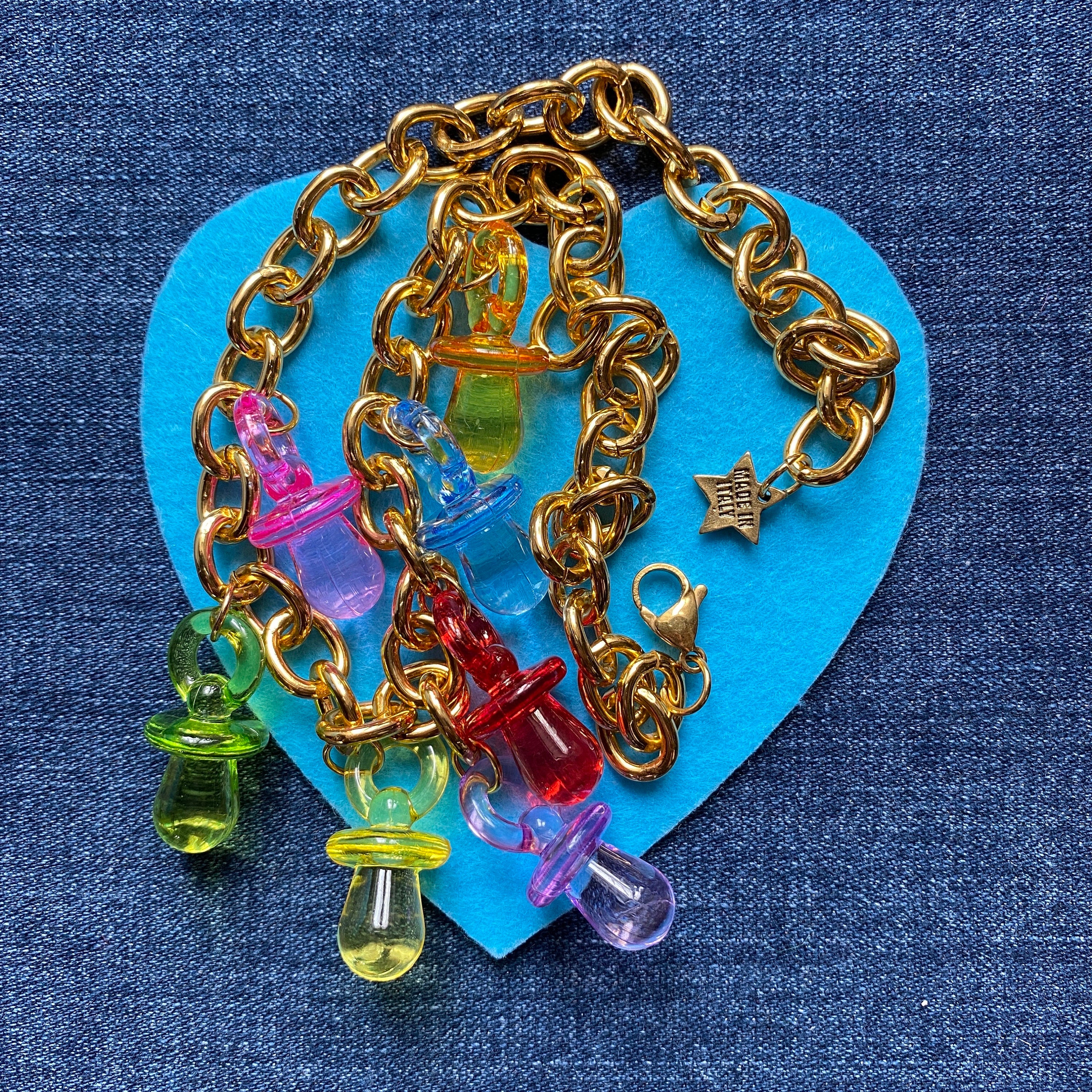 Nouveauté collier gros anneaux colorés multicolores et chaîne dorée, fermoir bou KAL-Cou Ensemble Mode Collier,Collier Tatouage,Tétine Acrylique,Élastique Collier Ras Du Cou,Lot De Mini Sucettes Décoratives, Collier Pour Femmes Et Filles... Annee 90 2000 FGen Cou Ensemble Mode Collier,Collier Tatouage,Tétine Collier Ras De Cou Fille