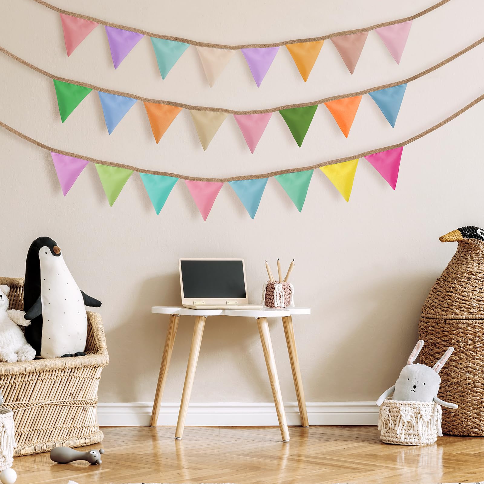 Couleur rouge, bleu marine, orange, bleu, vert, rose et lilas drapeaux de tissu cousu sur une bande blanche en coton. Double face (deux pièces de tissu cousues ensemble) Longueur 3 m avec 10 drapeaux Taille : fabriquée à partir de 100 % coton, cette guirlande en tissu coloré mesure 3 m de long avec 12 fanions double face Mélangez et assortissez : jetez un coup d'œil à nos fournitures de fête assorties Jubilé et Union Jack pour d'autres décorations et vaisselle rouges, blanches et bleues. Vous pouvez les trouver dans notre boutique... Spécifications : Matériel : tissu en coton imprimé double face Longueur : longueur totale 3,2 m/10,5 pieds Longueur du drapeau triangle simple face : 17 cm x 17... Guirlande Fanion Fait Main Guirlande De Fanions - Vintage - 3.3M - Tissu En Coton - 12 Guirlande Fanions Tissu Dncvb 2Pcs 3 Mètres Guirlande de Fanions en Tissu, Doux et épais Multicolor Fanions Banderole, Guirlande Drapeau Triangle Tissu avec 24 Pièces Drapeaux pour Les Décorations Murales