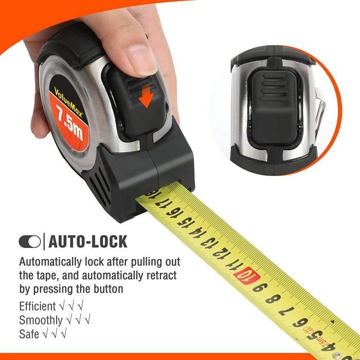 Matériau : acier inoxydable. Sa peinture fluorescente et son échelle double face distincte rendent les mesures facilement visibles. Ruban À Mesurer En Acier Fluorescent,Mètre Ruban Rétractable En Acier... ②【Facile à utiliser】Ce mètre ruban de précision est compact et confortable à tenir, se glisse sans effort dans votre poche. Visible et facile à utiliser : la couleur fluorescente améliore la visibilité, tandis que la taille de 10 x 25 m offre une vaste portée pour les mesures à grande échelle. Contenu : 1 mètre ruban fluorescent étanche. Occasions : Parfait pour une utilisation dans les environnements industriels et domestiques, fournissant des mesures précises dans toutes les conditions. Il dispose d'un clip pour une fixation pratique à une ceinture ou une poche. Caractéristiques du produit : Couleur : fluorescente., Dimensions : 10 x 25 m. Mètre ruban en acier inoxydable 10 x 25 m avec échelle fluorescente, règle étanche en acier au carbone avec mesure double face pour la construction. Mètre... ③【Échelle double face avec ruban fluorescent】Notre ruban épais présente un revêtement fluorescent, le rendant visible dans toutes les conditions d'éclairage, facilitant le travail dans l'obscurité ou la nuit. Metre Ruban Facom Mètre Ruban Acier Inoxydable 10x25m - Fluorescent - Étanche Metre Ruban 2m Échelle double face : la fonction échelle double face permet une utilisation flexible et une lecture facile des deux côtés, offrant des expériences de mesure plus efficaces. Caractéristiques du produit : Durable et durable : ce mètre ruban est en acier inoxydable résistant à la rouille et à la corrosion, assurant longévité et fiabilité pour tous vos besoins de mesure. ①【Matériau haut de gamme】Notre mètre ruban de précision est fabriqué en acier au carbone de qualité exceptionnelle, démontrant une grande rectitude et flexibilité. Il est également épais pour plus de durabilité et de longévité. Mètre ruban de 10 m, largeur 25 mm, ruban à mesurer fluorescent, ruban gradué double face rétractable en acier inoxydable, facile à lire, auto-bloquant