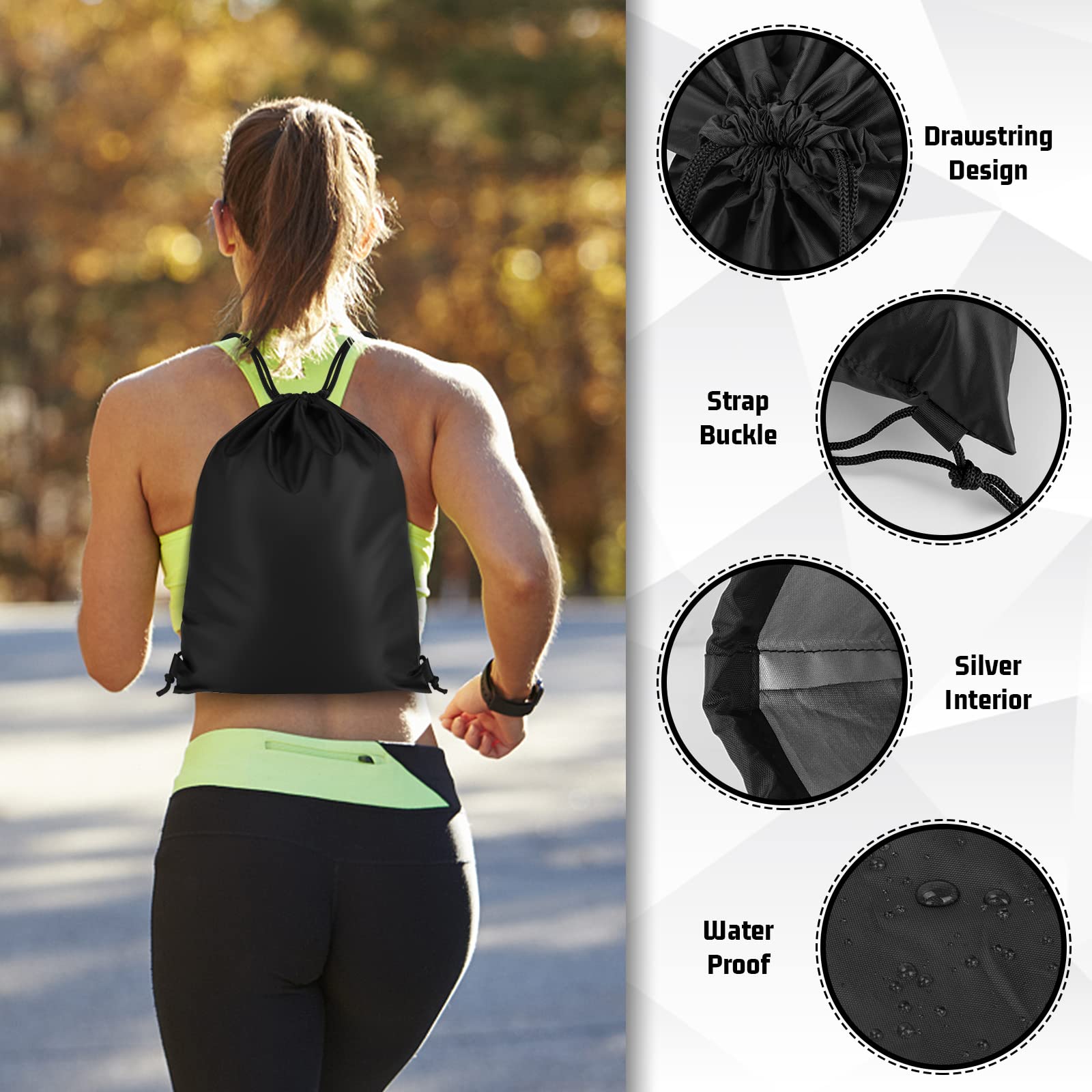 Cordes réglables Les cordes peuvent être ajustées à n'importe quelle longueur et peuvent être portées sur l'épaule ou comme un sac à dos. Lavable en machine à 40 °C Superbes designs – quel de nos designs tendance allez-vous choisir ? Ces motifs sont tous uniques à BundleBean et seront admirés partout où vous allez Sliverdew Sac à cordon de serrage, sac en polyéthylène noir, sac Peut être porté en sac à dos ou sur une épaule Sac à Cordon De Serrage Dans De Superbes Designs - Idéal Comme Une gamme de styles Disponible dans la gamme complète de nos motifs colorés et vifs – et convient non seulement aux mamans et aux papas occupés, mais aussi aux enfants pour l'école ou lors de voyages d'activités avec des amis ou des groupes organisés. Utilisations multiples : Ces sacs à cordon sont parfaits pour la crèche/l'école, le kit PE ou pour ranger un changement de vêtements Matériau léger Leur matériau fin et léger les rend super confortables et sèchent rapidement : ce qui les rend parfaits pour transporter des maillots de bain lorsque vous allez à la piscine ou pour les excursions à la plage. Ce sac à cordon est parfait pour transporter vos essentiels de gym, de yoga ou de natation. Fabriqué en polyester résistant à l'eau, il gardera vos affaires...