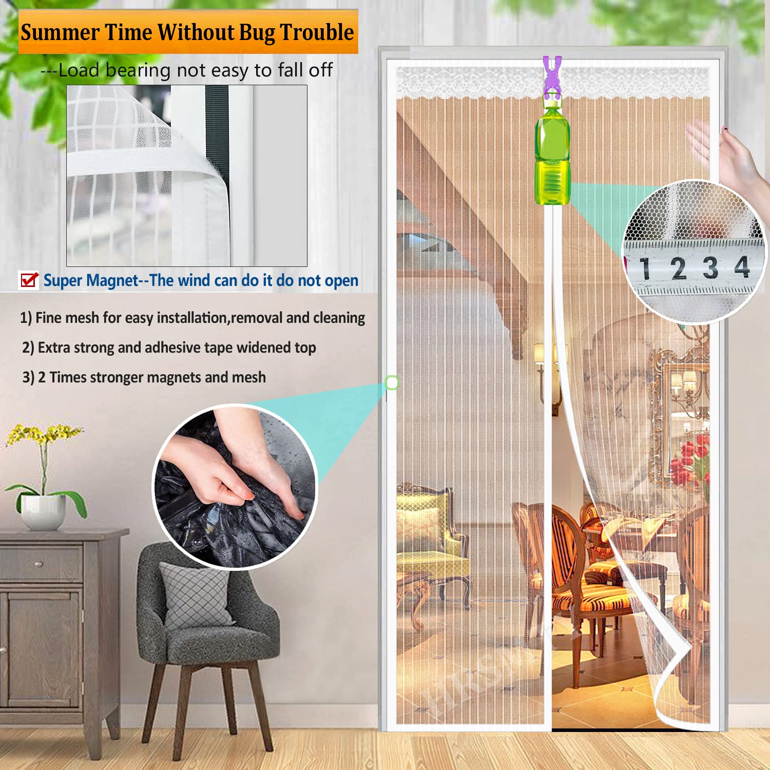 Taille de la porte moustiquaire magnétique : 96,5 x 246,4 cm, convient aux portes de 91,4 x 243,8 cm : assurez-vous un ajustement parfait, en mesurant votre porte (à l'exception du cadre de porte) avant l'achat. Des punaises supplémentaires sont incluses pour plus de sécurité et de résistance. Facile à installer : la porte moustiquaire mesure 96,5 x 246,4 cm, convient aux portes de 91,4 x 243,8 cm. Convient aux enfants et aux animaux de compagnie : le tissu en maille de fibre de verre est assez durable pour résister à des milliers d'utilisations, il est également assez léger pour que les enfants et les petits chiens et chats puissent marcher et s'ouvrir sans utiliser les mains AUGO Moustiquaire magnétique en fibre de verre – Auto-scellante, robuste, filet mains libres pour garder les insectes à l'extérieur – Convient aux animaux... UnBugs Porte Moustiquaire Magnétique – Empêche Les Insectes D'entrer Et Fonctionne avec porte coulissante, moustiquaire pour patio, porte tempête, porte d'entrée et plus encore Rideau de protection thermique magnétique pour porte, pose adhésive La maille robuste permet à l'air frais de circuler lorsqu'il est fermé. Il est super simple, rapide et rapide d'installer la porte moustiquaire. Convient aux enfants et aux animaux de compagnie : le tissu en maille polyester est assez durable pour résister à des milliers d'utilisations, il est également assez léger pour que les enfants et les petits chiens et chats puissent marcher et ouvrir sans utiliser les mains.