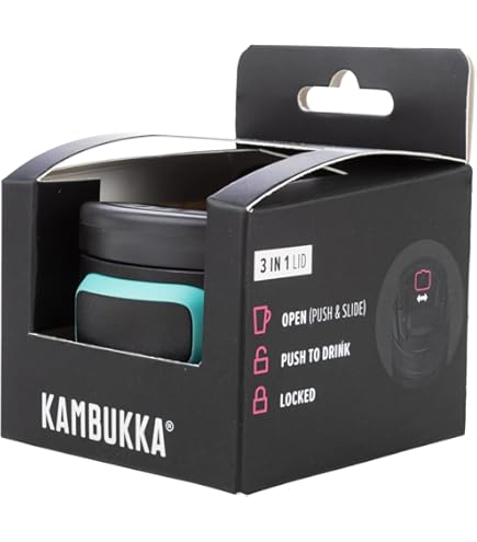 Au fait, vous ne vous inquiétez pas non plus de vos boissons chaudes. Tous les couvercles en Kambukka résistent aux températures élevées. Passe au lave-vaisselle, à peler et à jeter Transformez votre bouteille d'eau en tasse à café. Impossible me direz-vous ? Non, vous n'avez qu'à ajouter un couvercle à café à votre bouteille et la transformation est terminée. Vous pouvez maintenant remplir votre Kambukka d'or noir et profiter de la journée Vous aimez les boissons glacées pendant ces chaudes journées d'été ? Combinez simplement votre tasse isotherme avec le couvercle de votre bouteille d'eau, car vous pouvez mélanger et assortir nos bouteilles et couvercles et personnaliser votre expérience de boisson parfaite. Vous avez peur que la bouteille d'eau ne vous échappe ? Le bouchon d'eau 3 en 1 ne vous décevra pas. Le bouchon est conçu pour boire rapidement des boissons froides et n’est pas adapté aux boissons chaudes ou tièdes. Nettoyage rapide : grâce à notre fonction Snapclean en instance de brevet, il suffit de pincer et de tirer pour retirer le mécanisme interne en une seule pièce. Couvercle d'eau 3 en 1 avec 3 positions toujours ouvert, poussée pour boire verrouillable pour fermer La bouteille d'eau Elton dispose d'un couvercle 3 en 1 avec une position « poussée », « toujours ouverte » et « verrouillée », ce qui permet une expérience de boisson douce dans n'importe quelle situation. Kambukka Elton geïsoleerde drinkfles 750ml - Nightfall met 3-in-1 lid 3 En 1 Lubrifiant Bouteille D'eau Isotherme Kambukka Elton 1L - Nightfall Avec Couvercle 3 En 1 Et Kambukka Mug Kambukka Couvercle Elton 3 en 1 noir ... Actuellement indisponible. Nous ne savons pas quand cet article sera de nouveau approvisionné ni s'il le sera. Chargement... Goutte de la sueur, pas d'eau.