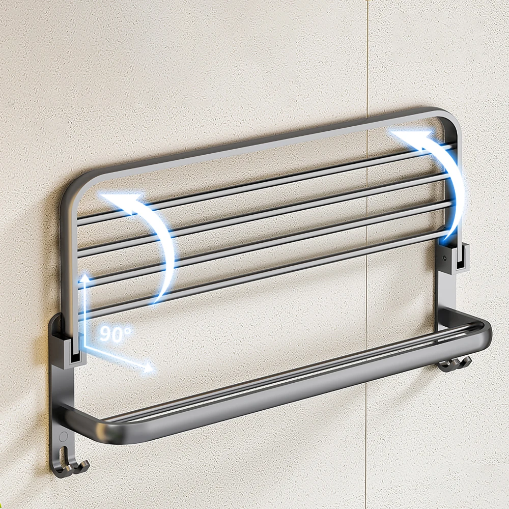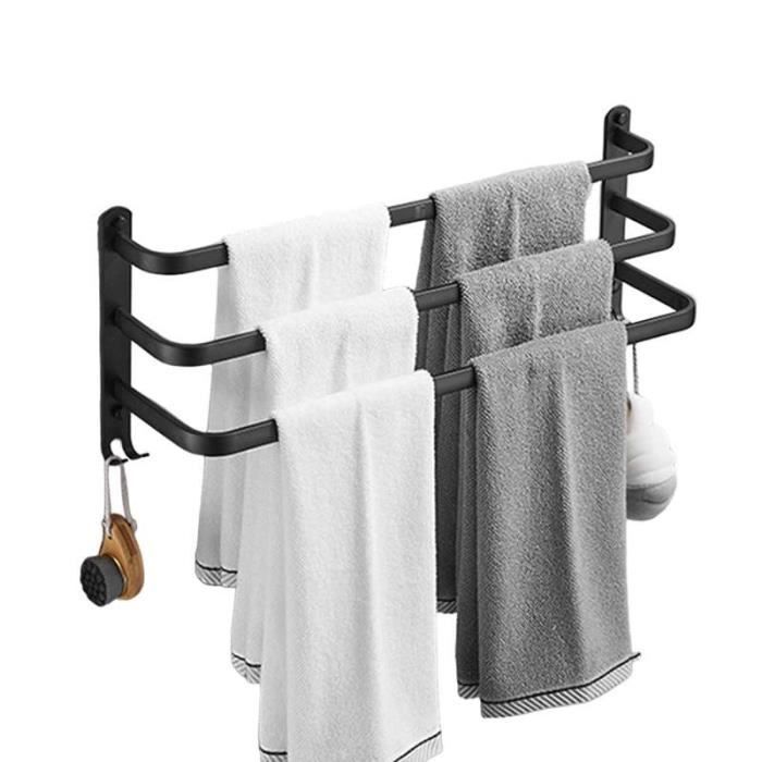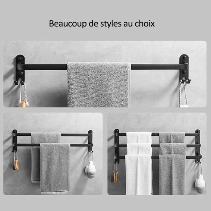 Différentes scènes Convient pour différents scénarios Le porte-serviettes sans perforation convient uniquement aux murs nus et propres. Porte-serviettes en aluminium pour salle de bain, triple barre, support Matériau : ABS. INSTALLATION FACILE : Profitez d'une installation sans perçage, rapide et simple, grâce à un adhésif puissant. Évitez les dommages à vos murs Les deux méthodes d'installation sont très stables et ne tombent pas. Porte Serviette Sans Perçage FlexiServ – Porte-serviettes Mural Sans Perçage – Maison-Génie Porte Serviette Adhésif Sans Percer Matériau de haute qualité : ce porte-serviettes est fabriqué en aluminium spatial de haute qualité et dispose de plusieurs couches de protection qui sont durables, antirouille et résistantes à la corrosion, assurant qualité et durabilité dans les environnements humides. Surface polie : trois couches de surface polie et de protection garantissent qu'il est résistant aux rayures, à la corrosion et aux taches quotidiennes, et reste comme neuf même après une utilisation prolongée. Rangement à double couche : le porte-serviettes dispose d'une étagère de rangement à double couche qui peut contenir plusieurs serviettes et peut être placé pour séparer vos serviettes et vos serviettes de bain. Porte-serviettes en aluminium, support mural sans perçage, étagère...