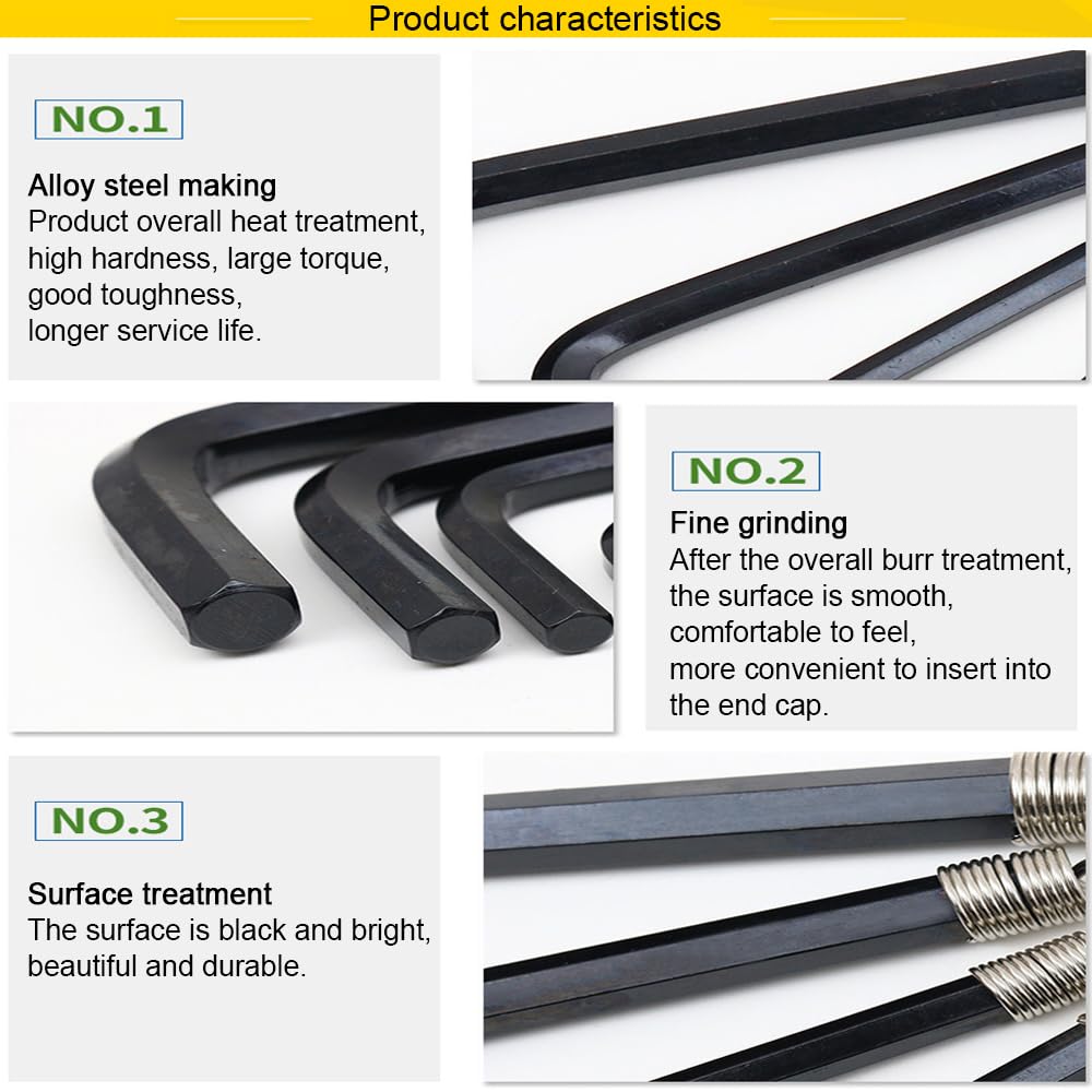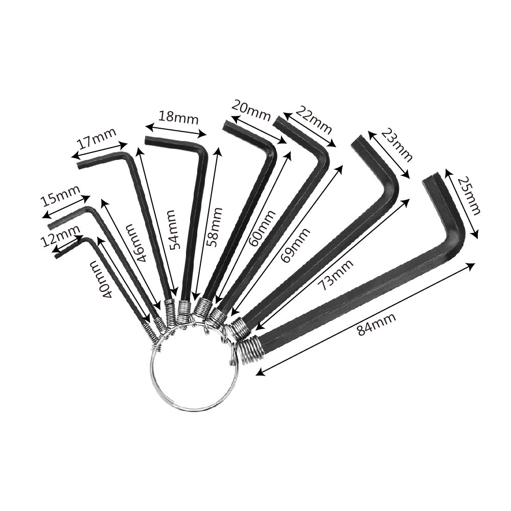 Caractéristiques : noircit le traitement de surface, haute résistance, haute ténacité, résistance à l'usure, bonne résistance à l'oxydation. Cle Allen 8 Mm Outil Réparation Cycle Clé Hexagonale Triple 4/5/6mm Pour Vélo - Acier Chromé - Outil De Réparation Cycliste - Léger Et Portable Accessoire Cyclisme Clé Allen 8en Portable et facile à utiliser, léger. Caractéristiques : Produit de qualité supérieure. Il est adapté aux applications extérieures. Le jeu de clés Allen pliables est doté d'un mousqueton qui permet de le fixer fermement à votre ceinture ou à votre sac à outils 【Application】- Ce kit de tournevis est idéal pour les vélos, motos, automobiles, presque tous les types d'appareils électroménagers électriques, etc. Contenu de l'emballage : Lot de 8 clés hexagonales micro Jeu de 8 clés Allen en T IRWIN, comprenant les tailles suivantes : 2,0 - 2,5 - 3,0 - 4,0 - 5,0 - 6,0 - 8,0 - 10,0. Fabriquées en acier au chrome-vanadium, ces... Convient pour les vélos, motos, automobiles, presque tous les types d'appareils électroménagers électriques, etc. Matériau : acier au chrome vanadium., Couleur : noir. Jeu de clés Allen mâles héxagonales - COGEX - 8 pièces - Fer, acier - 5 Quantité : lot de 8 pièces. Merci de ne commander que si vous acceptez cette marge d'erreur., 2., Les couleurs peuvent varier légèrement en fonction des paramètres d'affichage de votre écran. Remarque : Les mesures étant prises à la main, les tailles indiquées peuvent varier de 1 à 3 mm. Tailles de clé : 1,5 mm, 2 mm, 2,5 mm, 3 mm, 3,5 mm, 4 mm, 5 mm, 6 mm Matériau : acier au chrome vanadium, dur et durable.