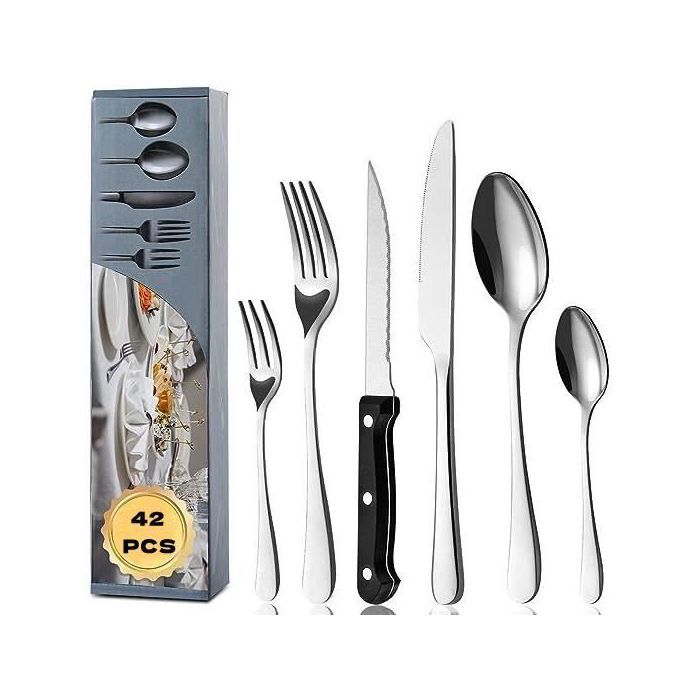 S'accorde parfaitement avec la vaisselle, le meilleur choix pour le dîner. Contenu : 6 couteaux, 6 cuillères à soupe, 6 fourchettes, 6 cuillères à café. Design unique : le design miroir poli de luxe le rend lumineux, tendance et élégant. 【Meilleur servic】Si vous rencontrez un problème, n'hésitez pas à nous contacter. Menagere inox 24 pieces - Arts de la table Caractéristiques : Matériau : acier inoxydable. Convient pour une utilisation dans les hôtels, maisons, bars, fêtes, pique-niques, barbecues, cuisines, restaurants, etc. Meilleur cadeau pour vos amis ou votre famille à Noël, anniversaire, Thanksgiving et plus encore. Fabriqué en acier inoxydable, résistant à la corrosion, aux hautes températures, sûr et sain pour une utilisation quotidienne, passe au lave-vaisselle. Pas besoin de repolir. Service pour 6 personnes, soit 24 pièces au total. Service pour 6 : cet ensemble de couverts contient 6 cuillères à café, 6 cuillères, 6 fourchettes et 6 couteaux, peut satisfaire la plupart des familles avec 6 personnes. Le design élégant et la qualité premium rendent cet ensemble de couverts adapté pour les cuisines, les restaurants, les événements et les repas quotidiens Cuillère à café Longueur : 13 cm., Poids : 10 g. Menagere 48 Pieces Christofle Essential 5920012 Ménagère 24 Pièces En Acier Inoxydable Ustensiles De Cuisine Fabriqué en acier inoxydable 18/10 de haute qualité, robuste et durable, résistant à la chaleur, acier inoxydable, surface brossée, bords lisses... Sûr et sain pour un usage quotidien, passe au lave-vaisselle. Facile à utiliser et à nettoyer : passe au lave-vaisselle ; convient pour une utilisation dans les hôtels, maisons, bars, fêtes, cuisine, maison, restaurant et ainsi de suite. Remarque : Veuillez laver les couverts avec de l'eau chaude savonneuse avant la première utilisation., 2., Veuillez sécher les couverts avec une serviette douce en temps opportun., 3., La couleur peut être légèrement différente en raison des différences de paramétrage des écrans., 4., Si vous rencontrez un problème, n'hésitez pas à nous contacter. Fourchette de table Longueur : 21,8 cm., Poids : 30 g. Les bords lisses ne couperont pas vos lèvres ou vos mains.