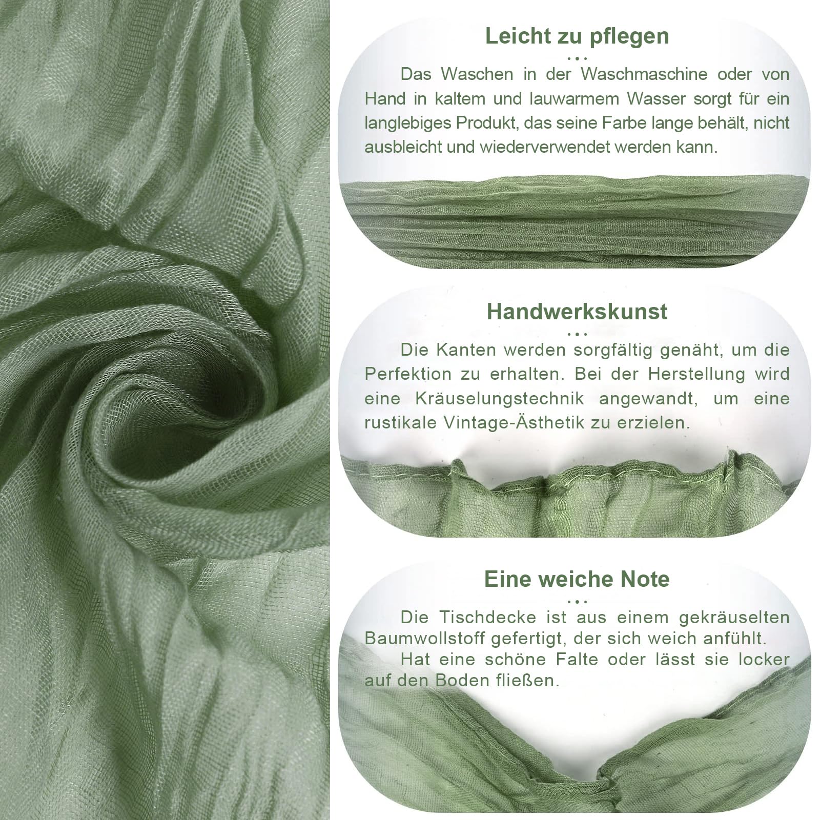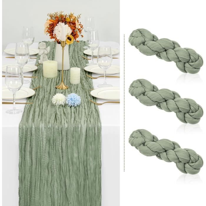 Doux au toucher, réutilisable, lavable et résistant à la décoloration. Les chemins de table en gaze multifonctionnels sont parfaits pour différents événements tels que mariages, réceptions, banquets, fêtes d'anniversaire, fêtes de mariage et fêtes prénatales, tables au trésor, cérémonies de fiançailles, buffets de bonbons, cérémonies, Noël, Saint-Valentin, Pâques, Thanksgiving et bien d'autres occasions spéciales. La décoration de table au centre est douce, lisse et agréable au toucher. Lot De 2 Chemins De Table En étamine, Style Bohème Vintage Location TVM PARIS est le spécialiste de la location de vaisselle, location de tables, location de chaises, location de tentes, location de mobilier lumineux. Chemin de table en étamine vert sauge 90x400 cm, Long chemin de table rustique transparent en gaze Pour mariage, fête d'anniversair · ARGENT 12,72 € · BEIGE 15,74... Contenu de la livraison : 2 chemins de table en étamine vert sauge de 400 cm. Couleur. Vert Sauge · Matériau. Coton · Taille. 400x90 cm · Marque. LWuuywa · Motif. Vert sauge · Style. Style bohème rustique Ces longs chemins de gaze montrent une atmosphère romantique et vous permettent, vous et vos amis, de profiter suffisamment de la fête. Chemin de table rustique : avec le chemin de table en gaze de style campagne bohème, votre fête mettra facilement en valeur un look rustique et élégant et une touche bohème romantique. DROMCOM Lot de 2 chemins de table en étamine, 90 x 300 cm